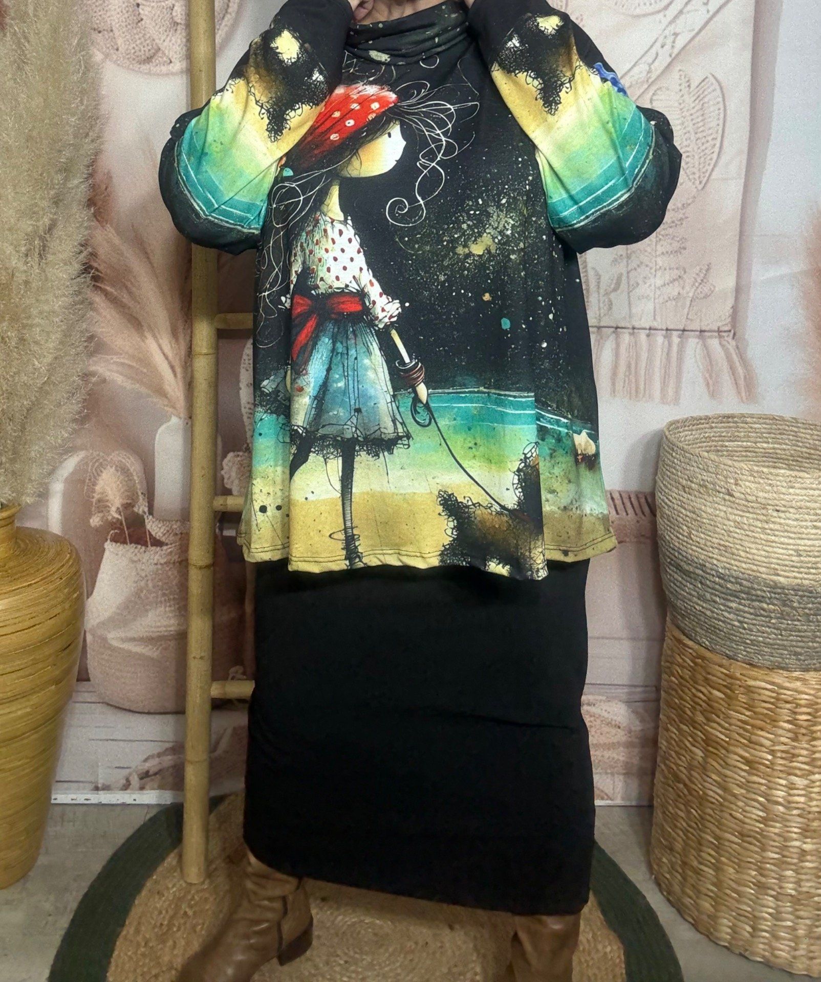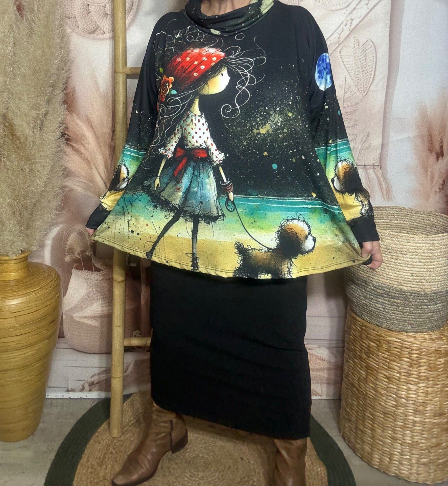 Top ample col bénitier noir La Fillette et le petit chien du 42 au 54/56