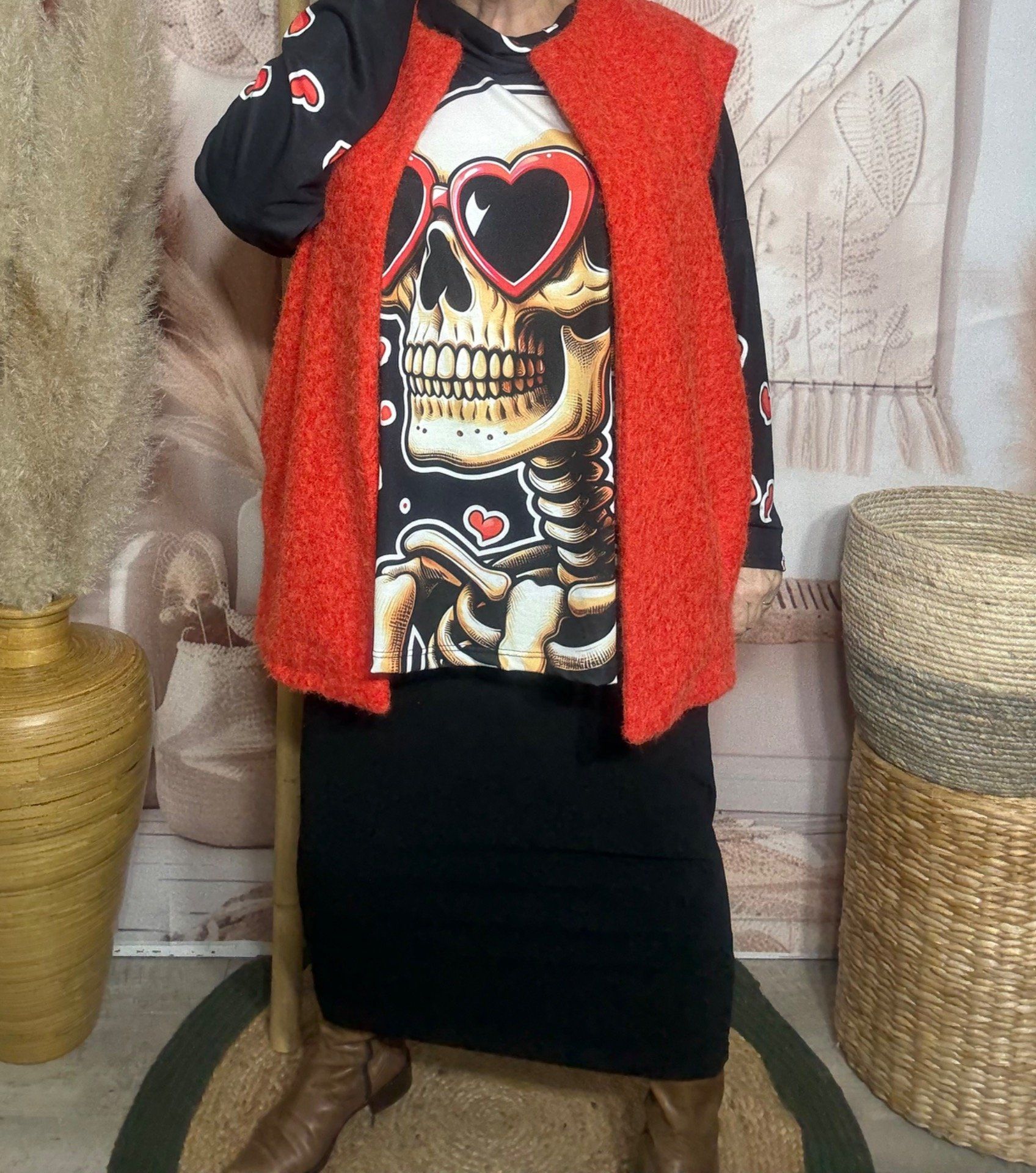Top ample col bénitier noir Mexican Skulls Calavera lunettes coeurs du 42 au 54/56