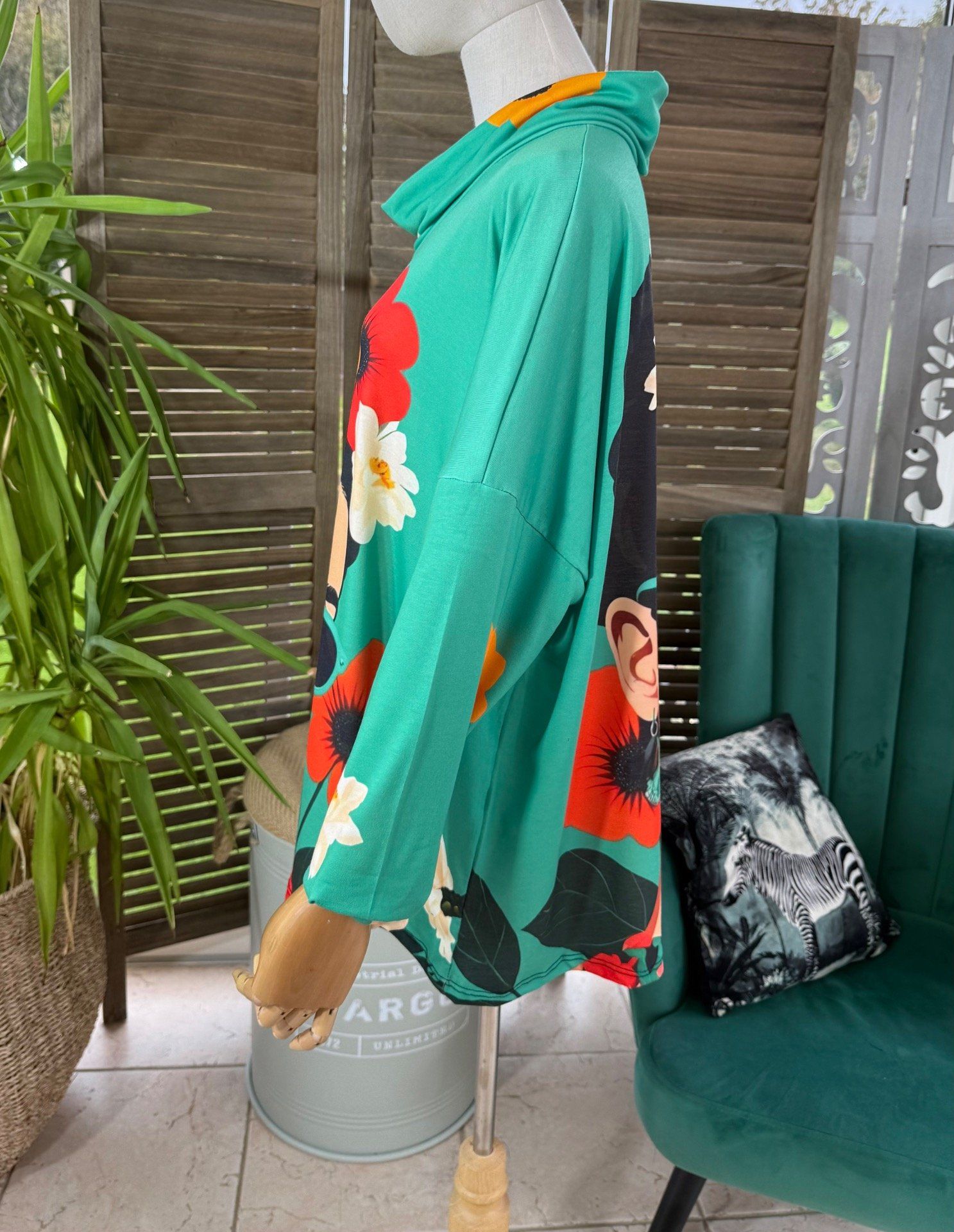 Top ample col bénitier vert émeraude Frida Kahlo aux Fleurs du 42 au 54/56