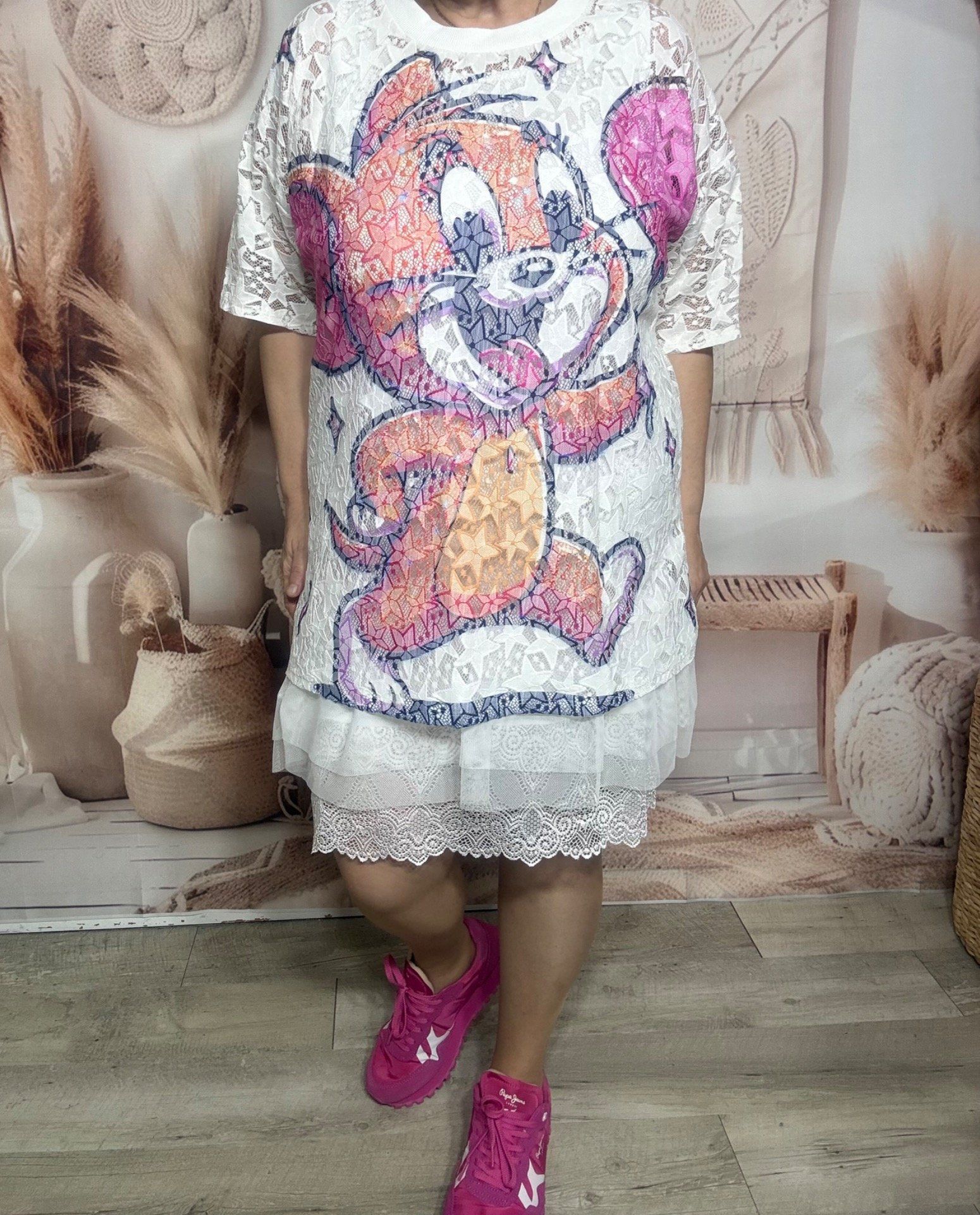 Top ample dentelle blanche Jerry La Souris du 34 au 46/48