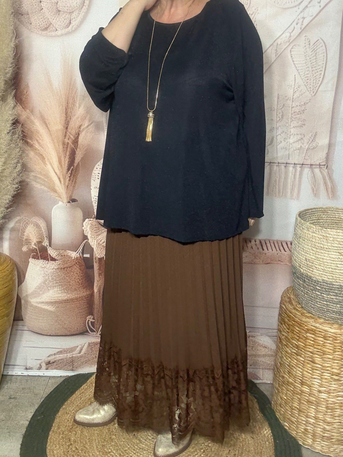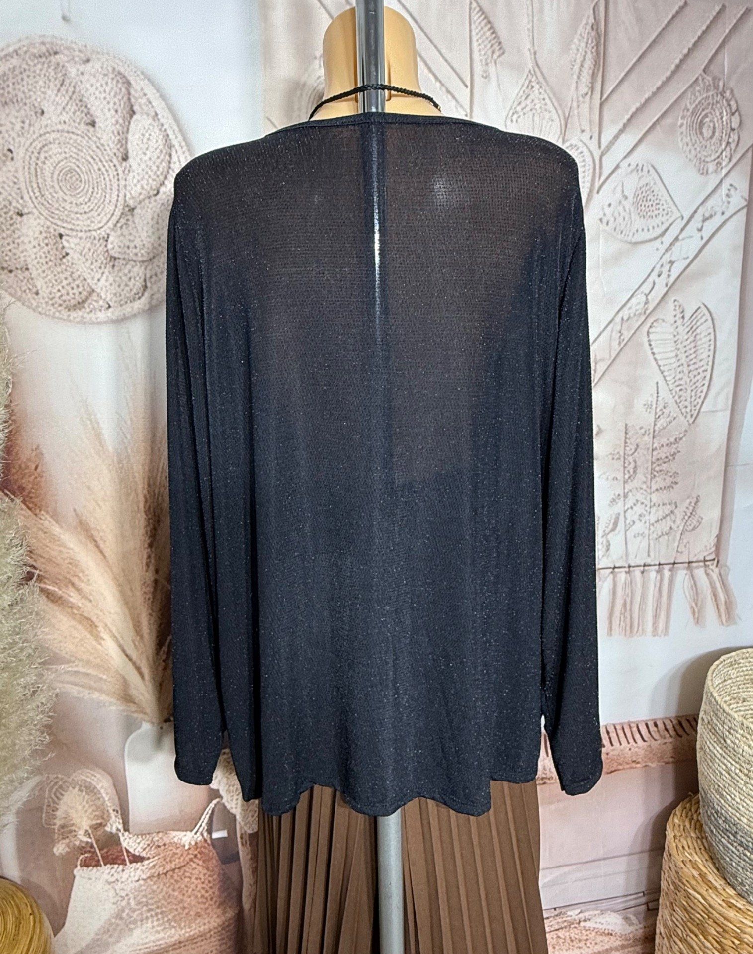Top ample noir pailleté noir brillant manches longues Fêtes du 42 au 54/56