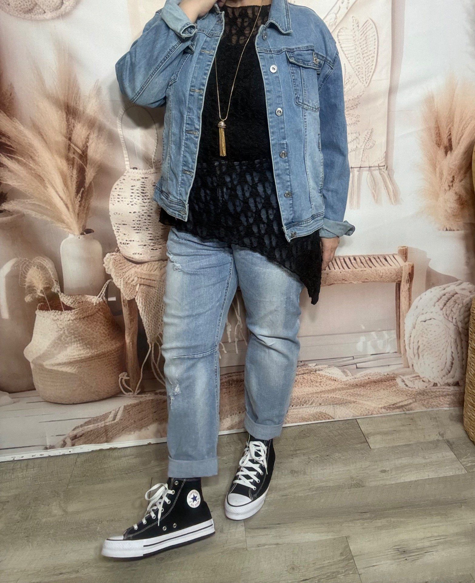 Top asymétrique dentelle noire manches longues confort +++ du 36 au 48