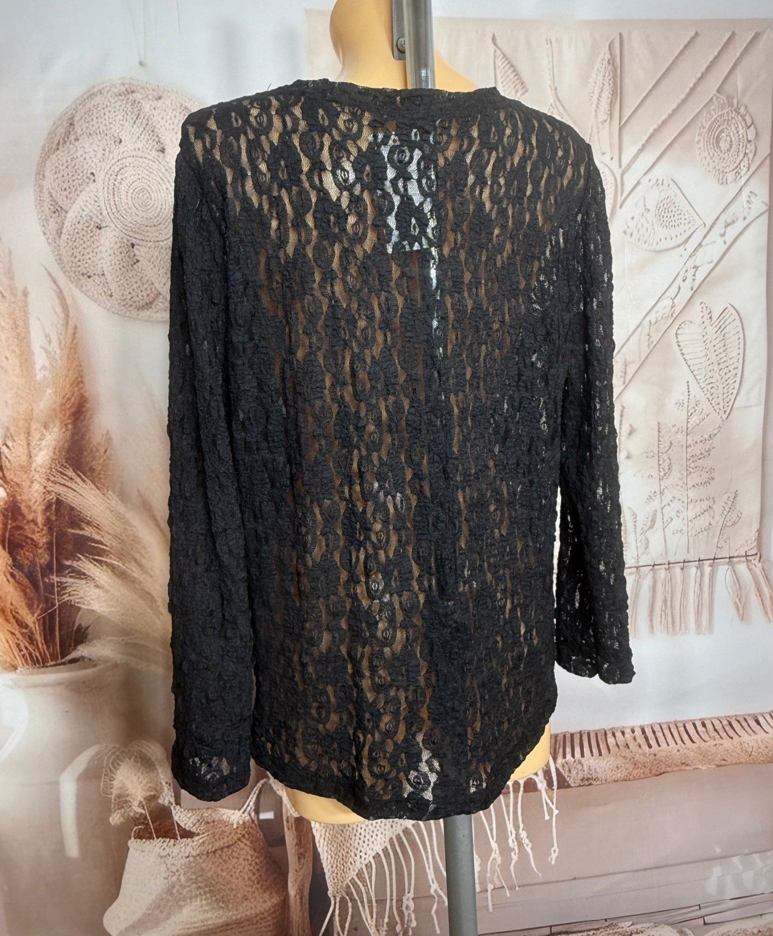 Top dentelle noire Col arrondi manches longues confort +++ du 36 au 48