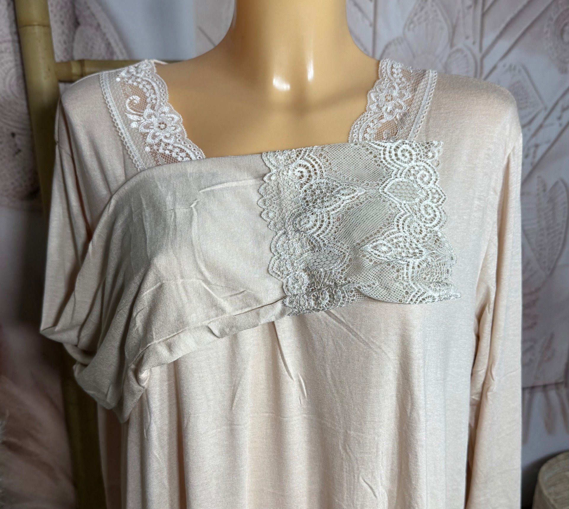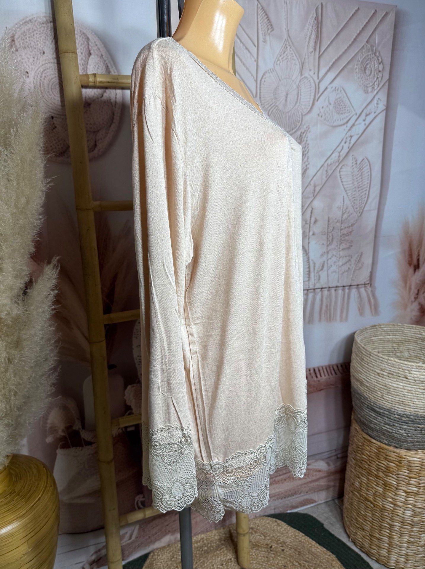 Top dentelle / Sous-pull dit "Rouleau" beige clair manches longues qualité +++