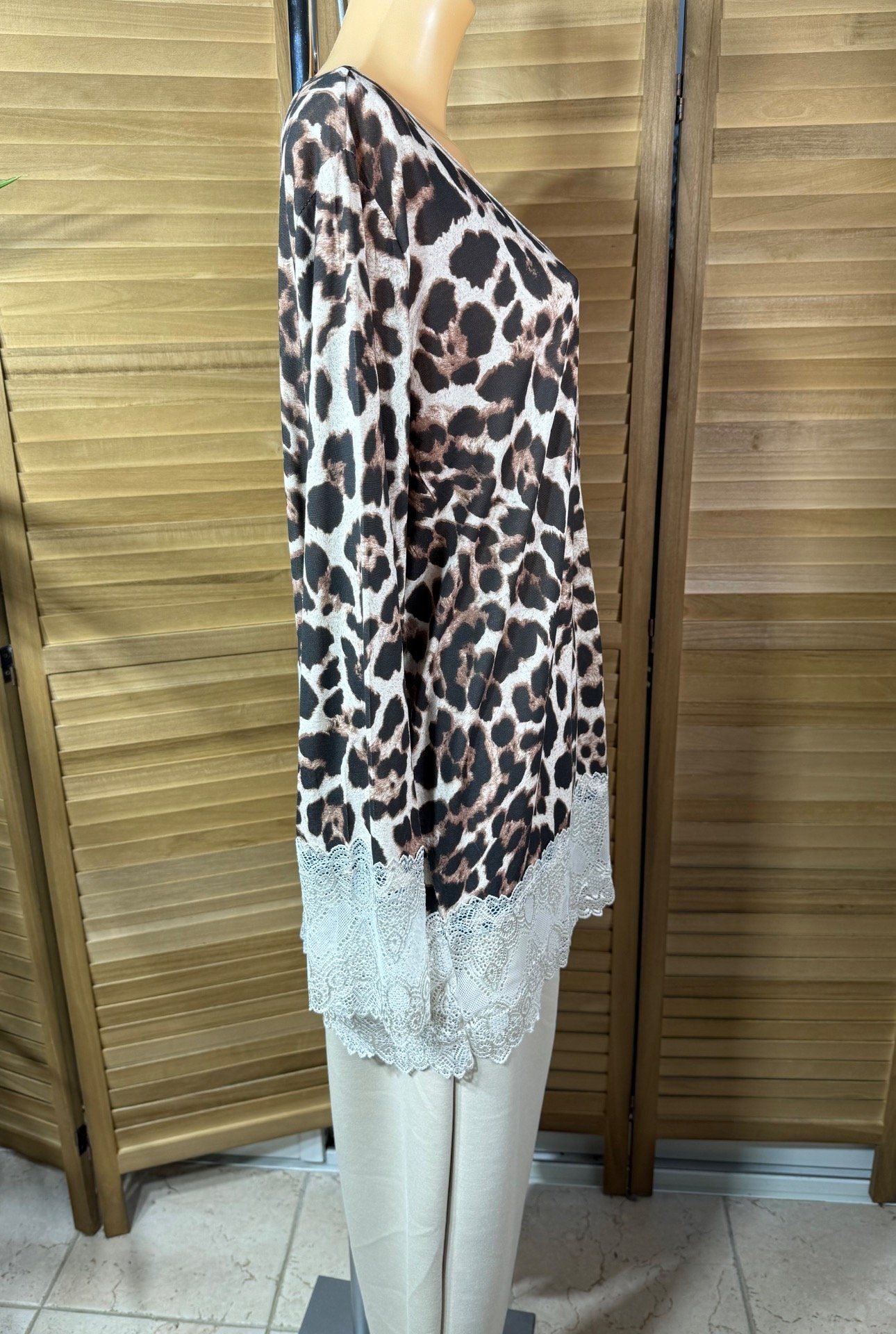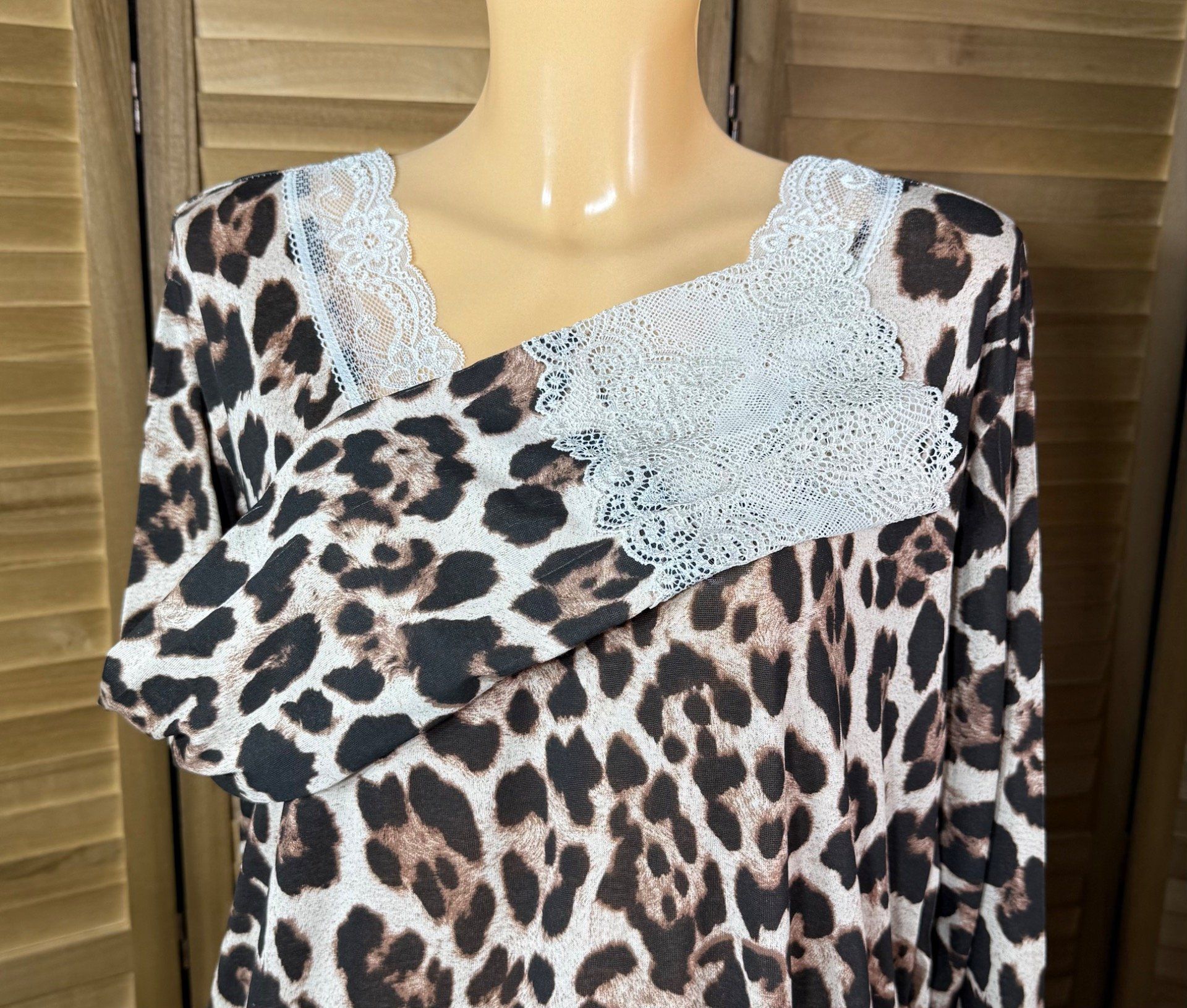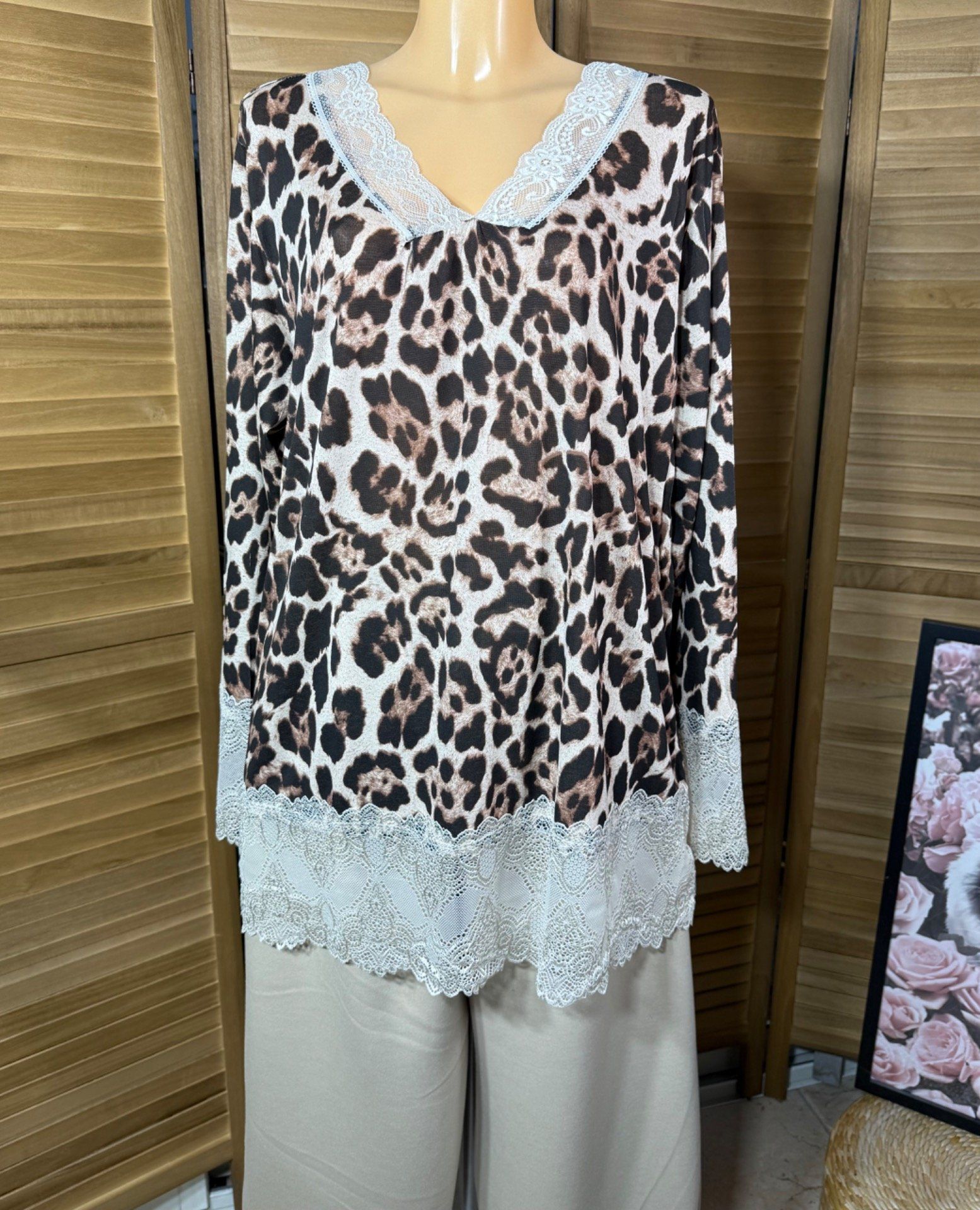 Top dentelle / Sous-pull dit "Rouleau" Léopard crème manches longues du 42 au 54/56
