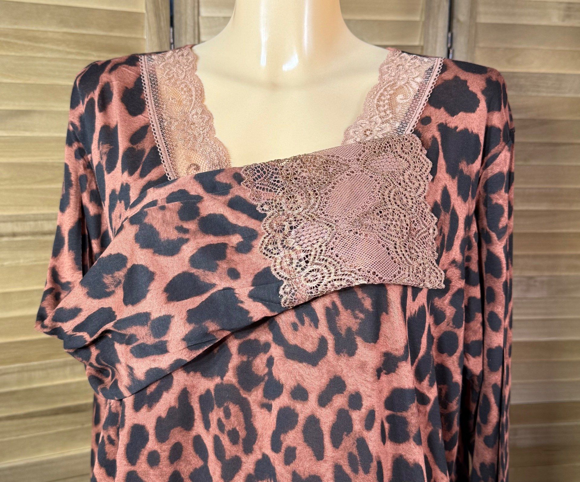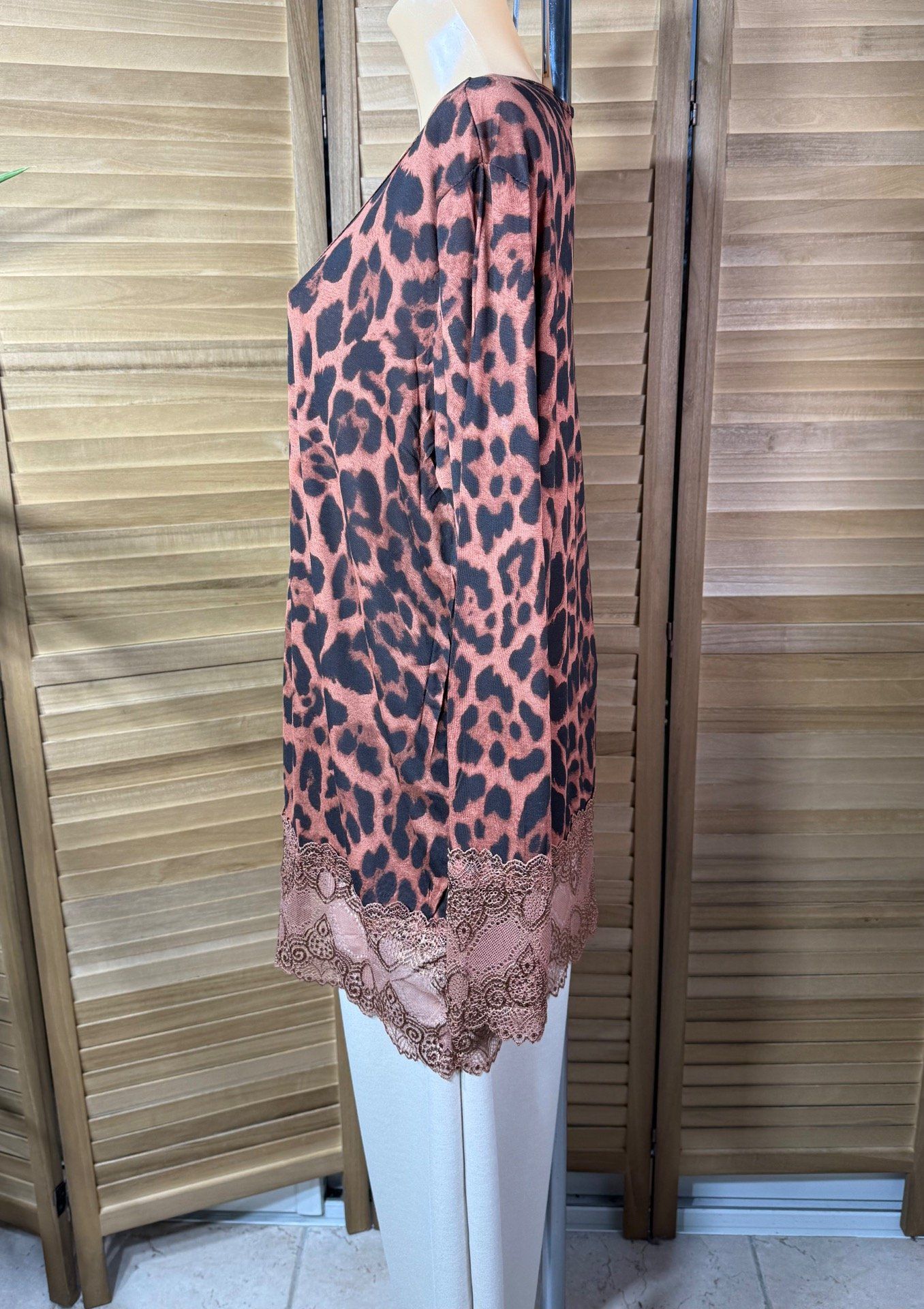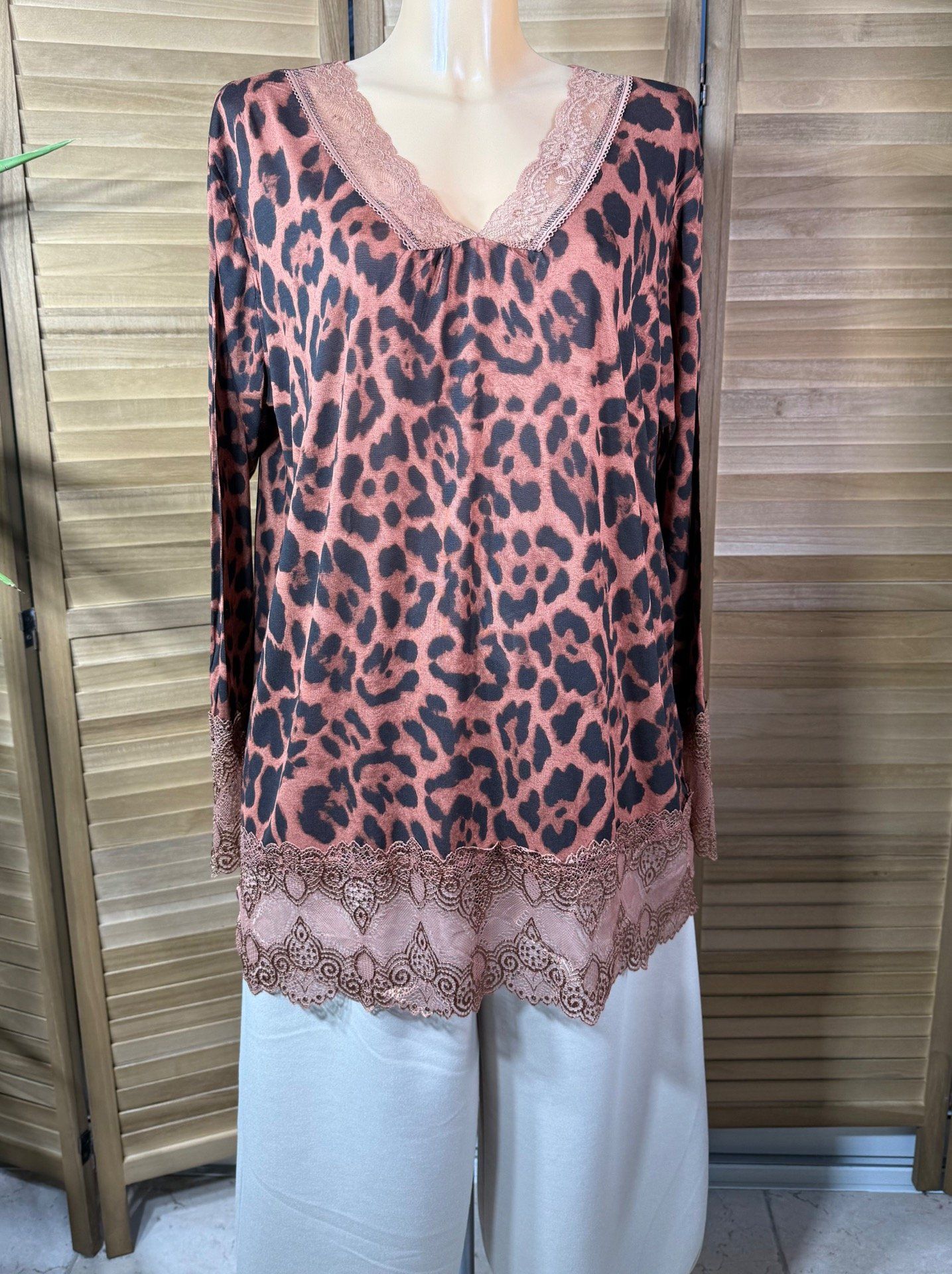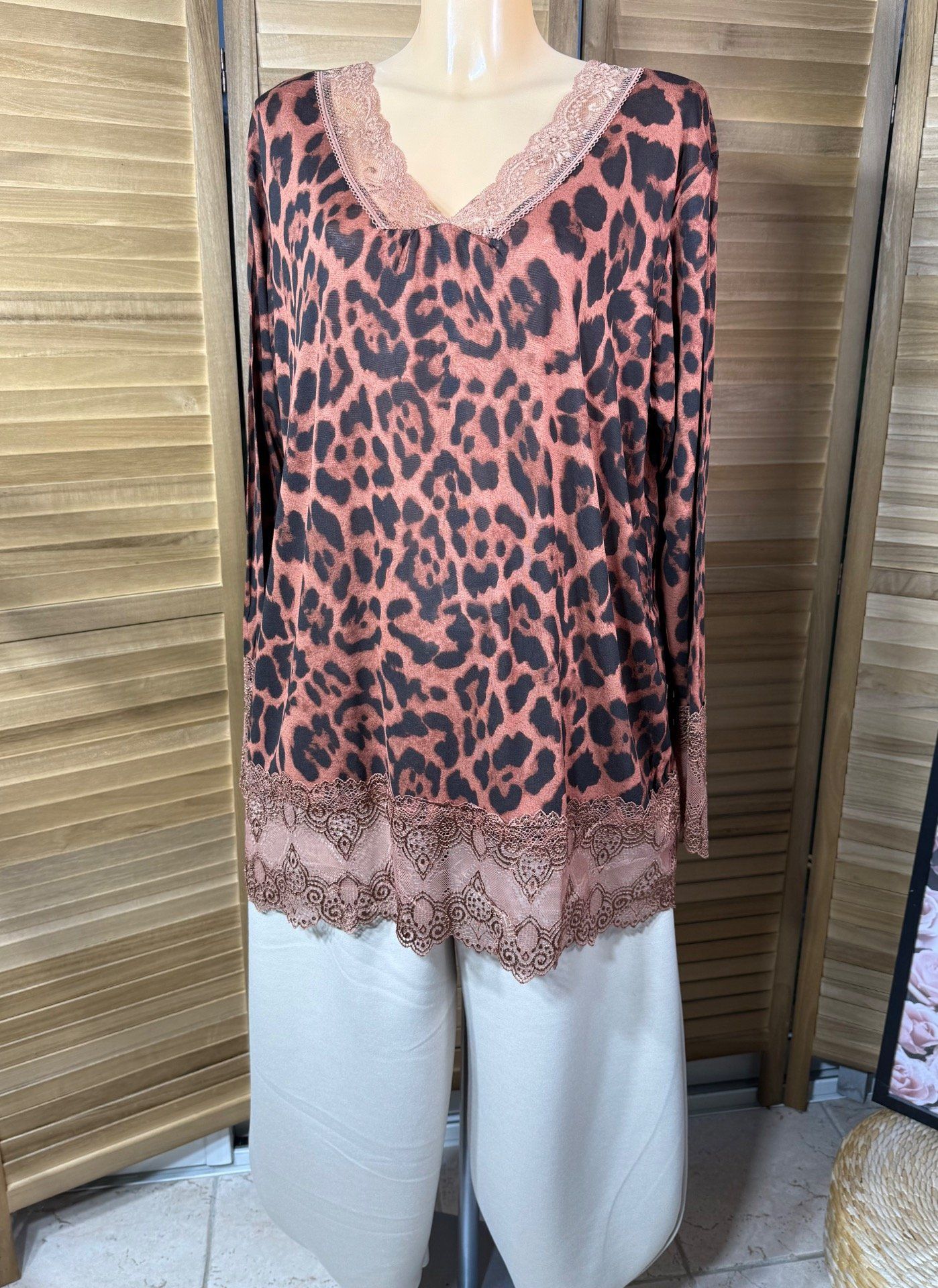 Top dentelle / Sous-pull dit "Rouleau" Léopard Rouille manches longues du 42 au 54/56