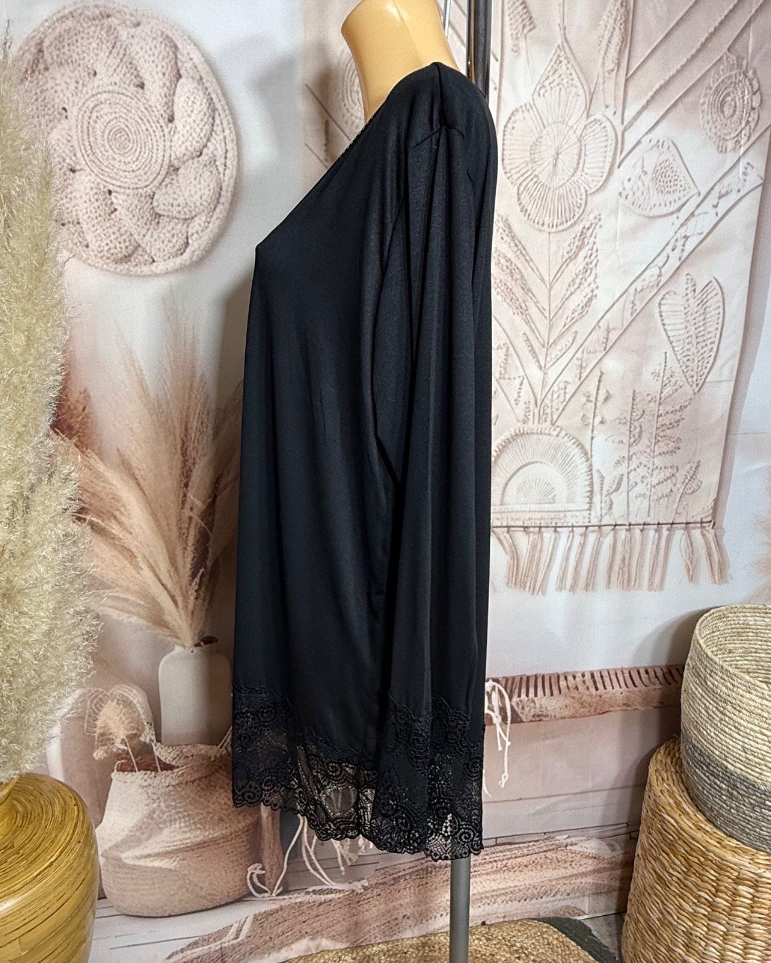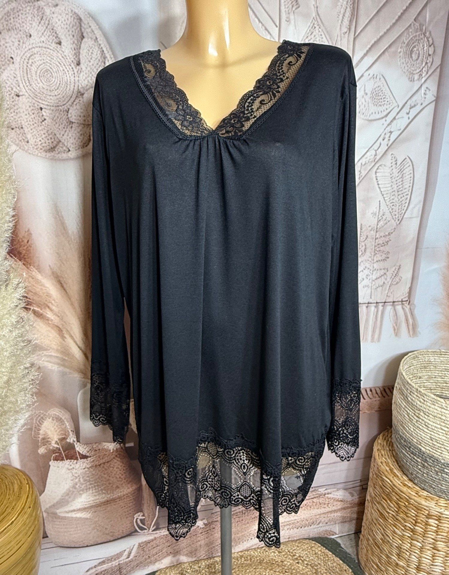Top dentelle / Sous-pull dit "Rouleau" noir manches longues qualité +++