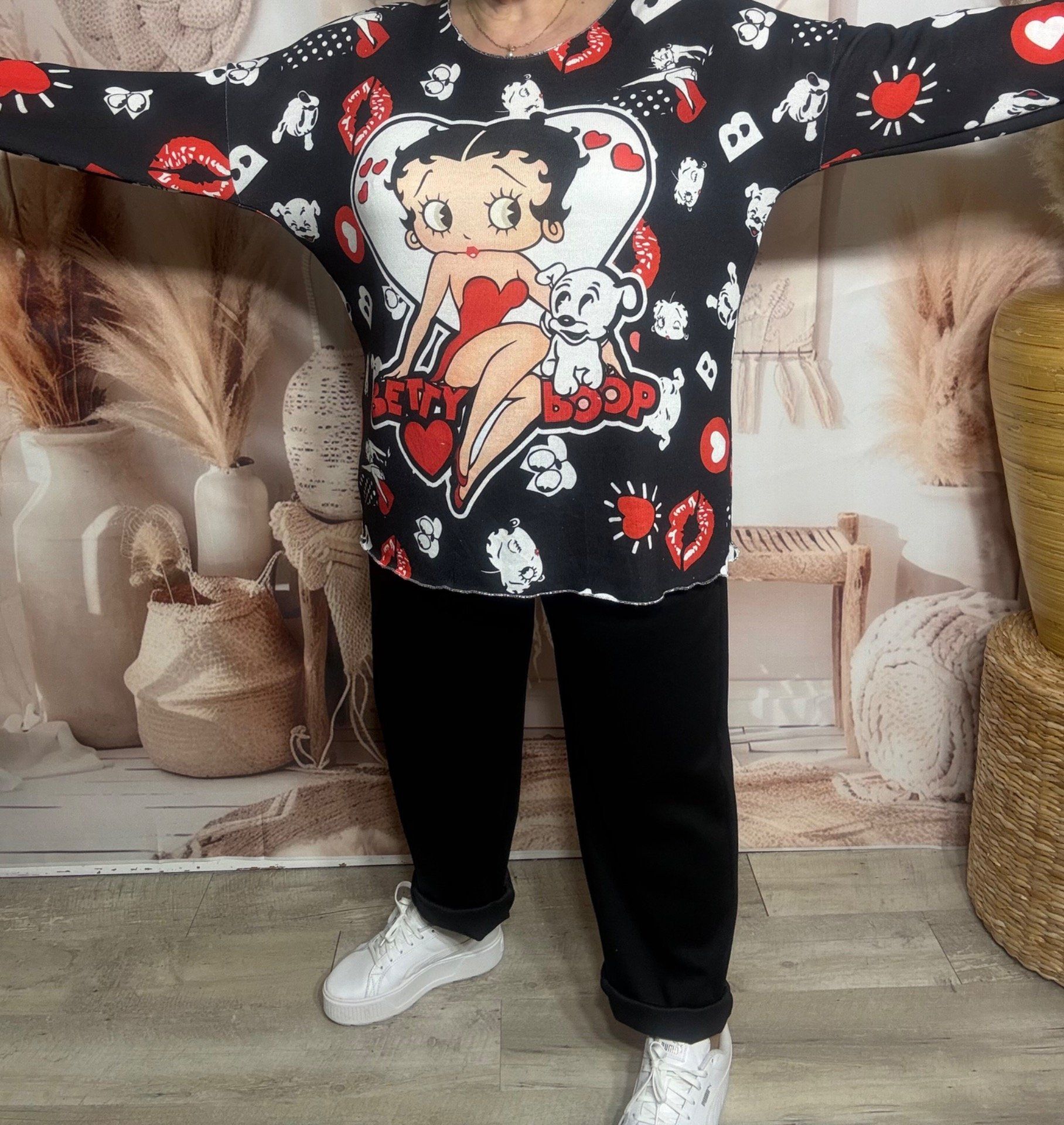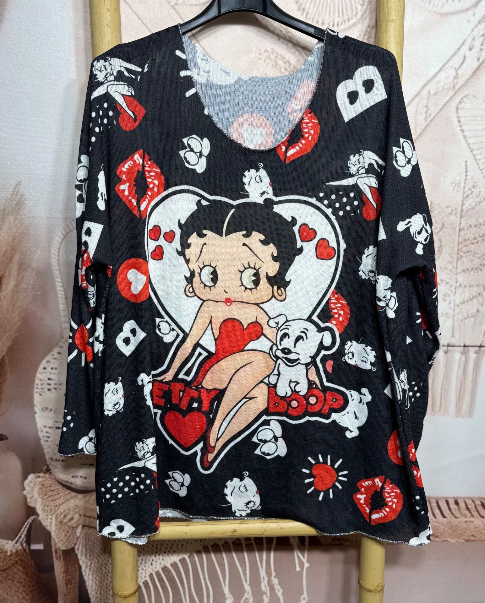 Top manches longues noir Betty Boop & son chien Pudgy du 40 au 50/52