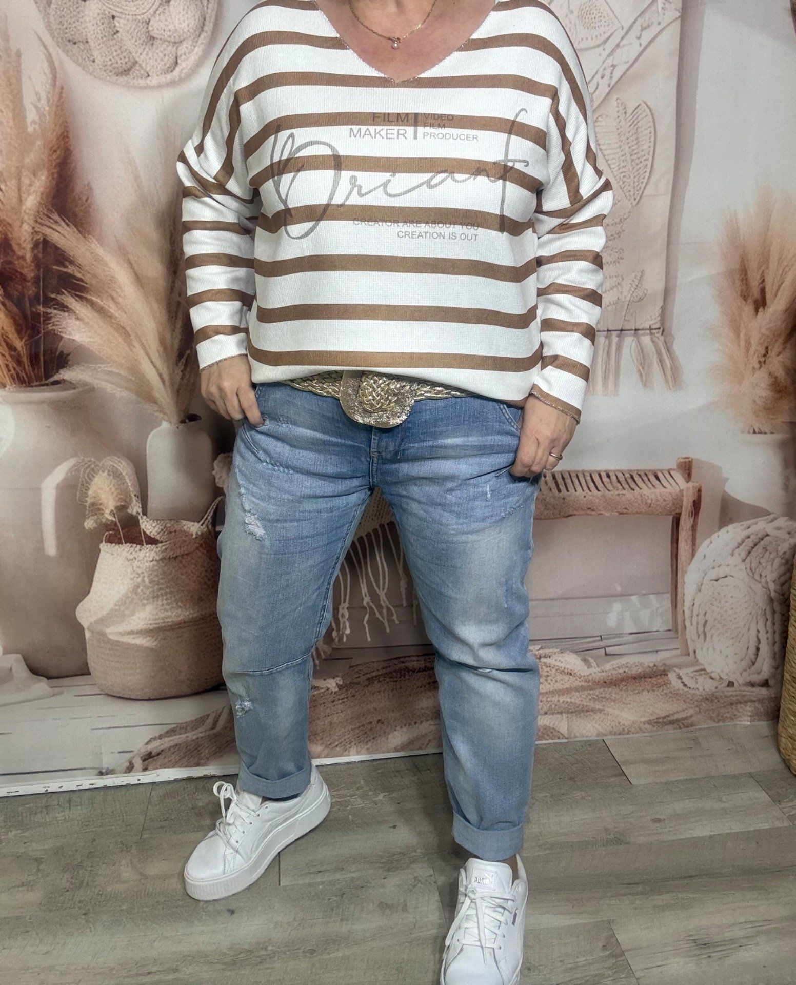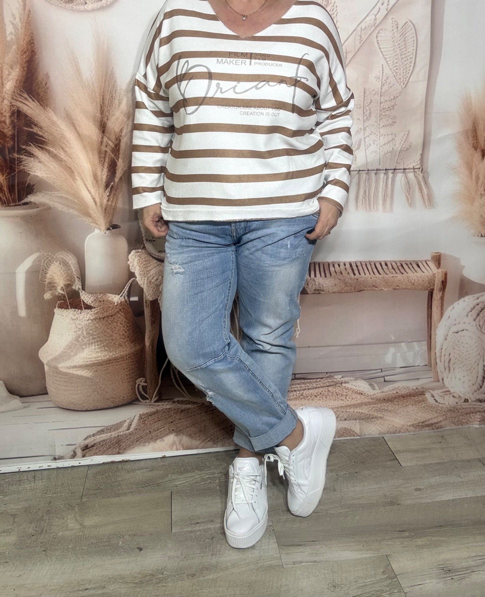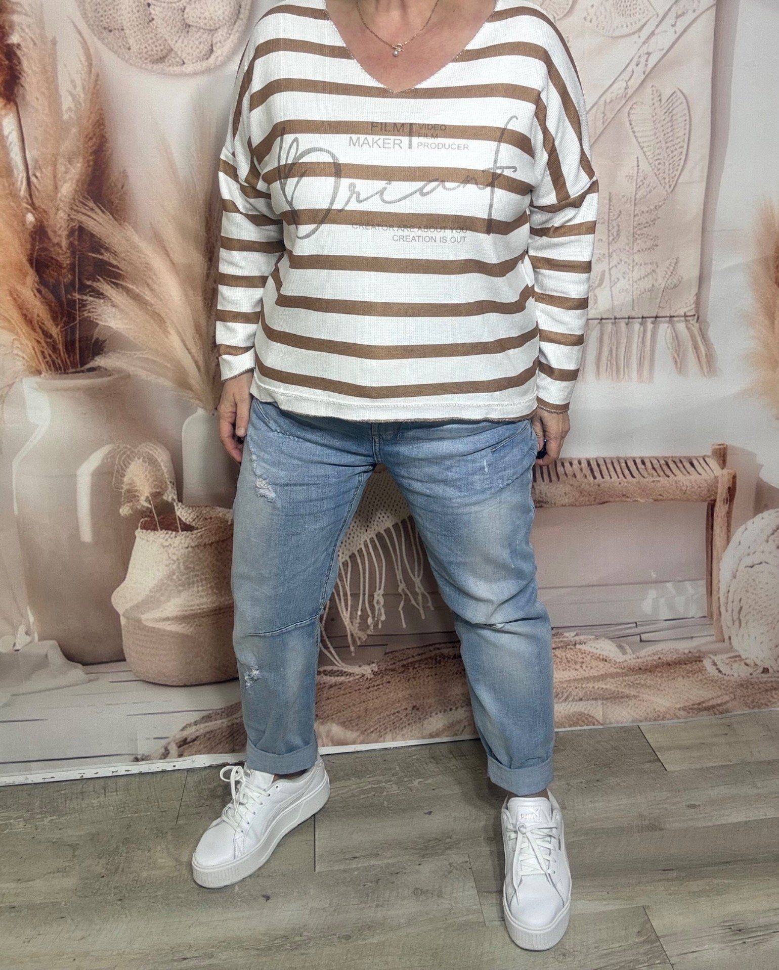 Top marinière écru & camel toucher velours douceur +++