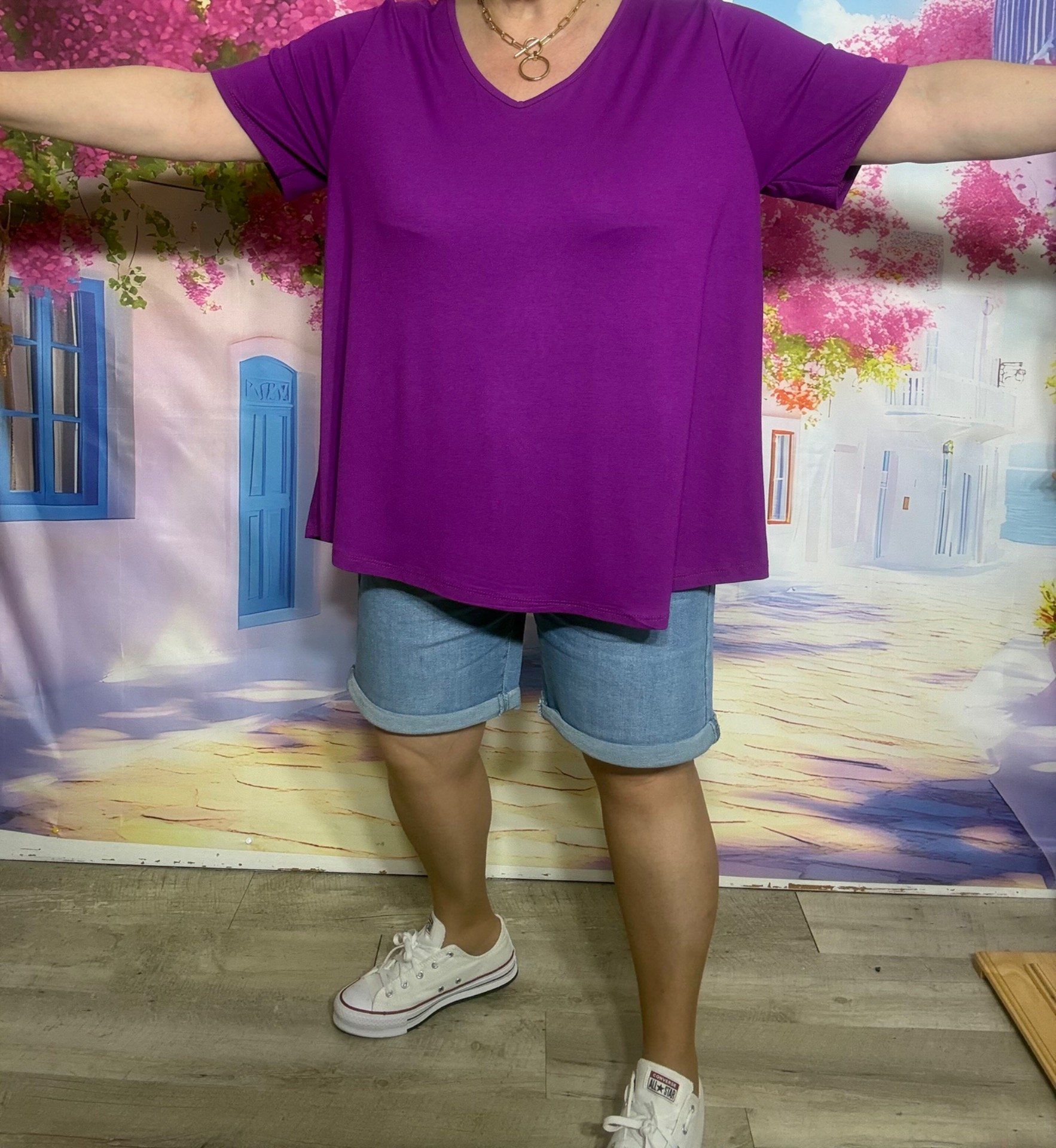 Top trapèze Aubergine manches courtes col V collection Les Basiques du Dressing du 40 au 54