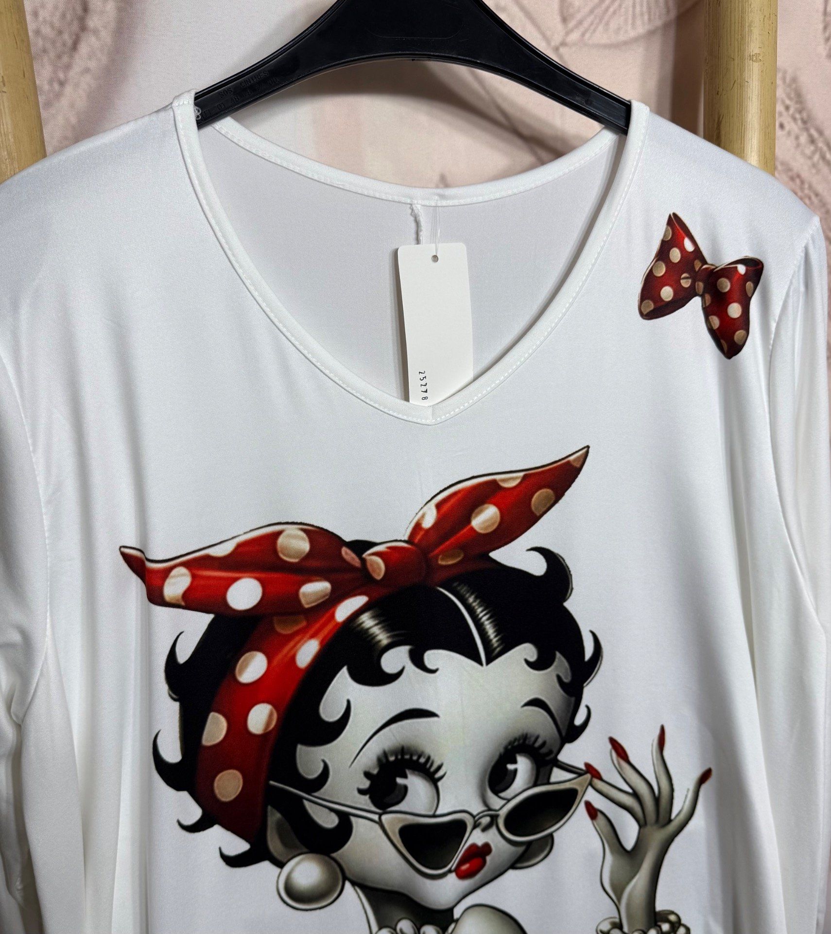 Top trapèze blanc manches longues Betty Boop Pin Up Rétro chic
