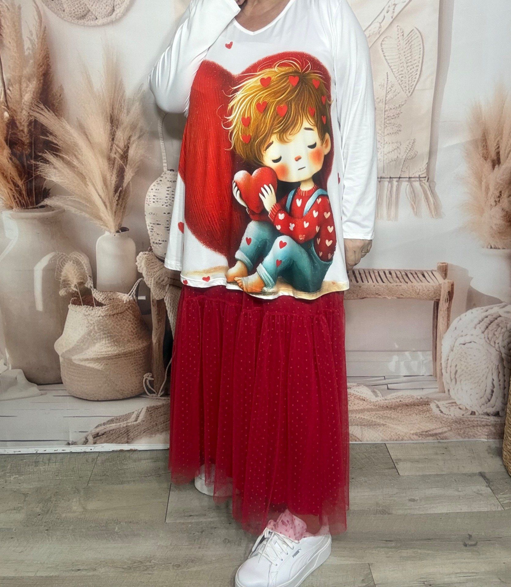 Top trapèze blanc manches longues Le petit garçon amoureux