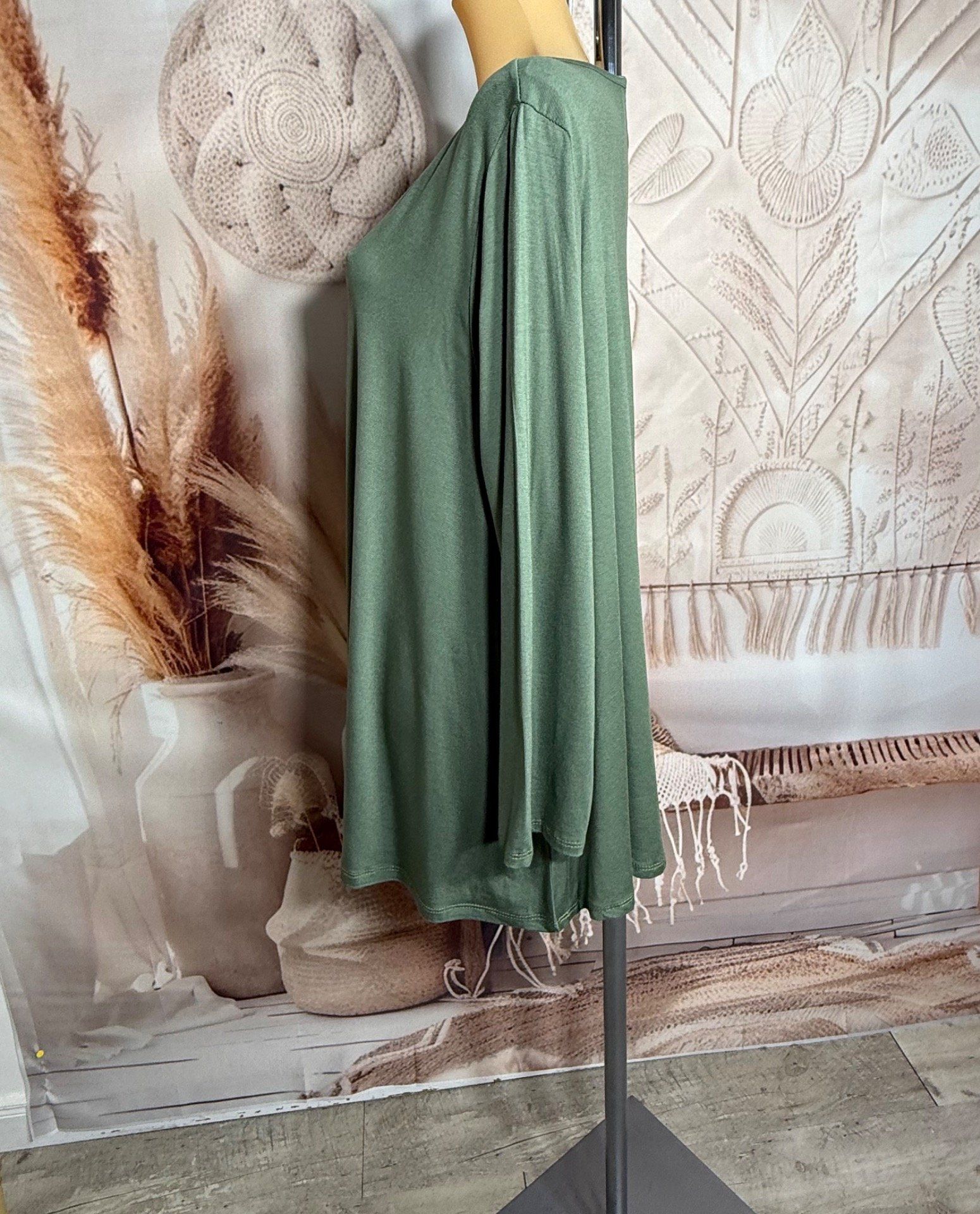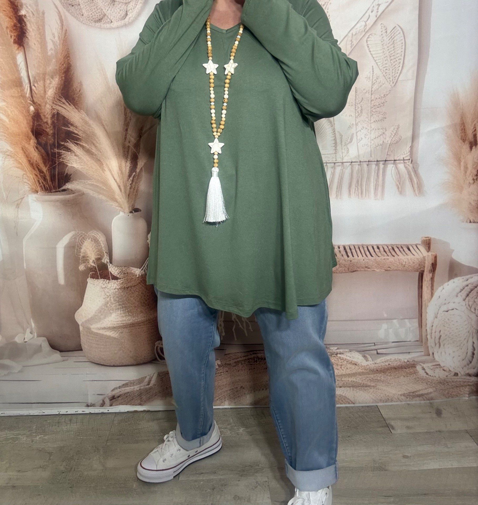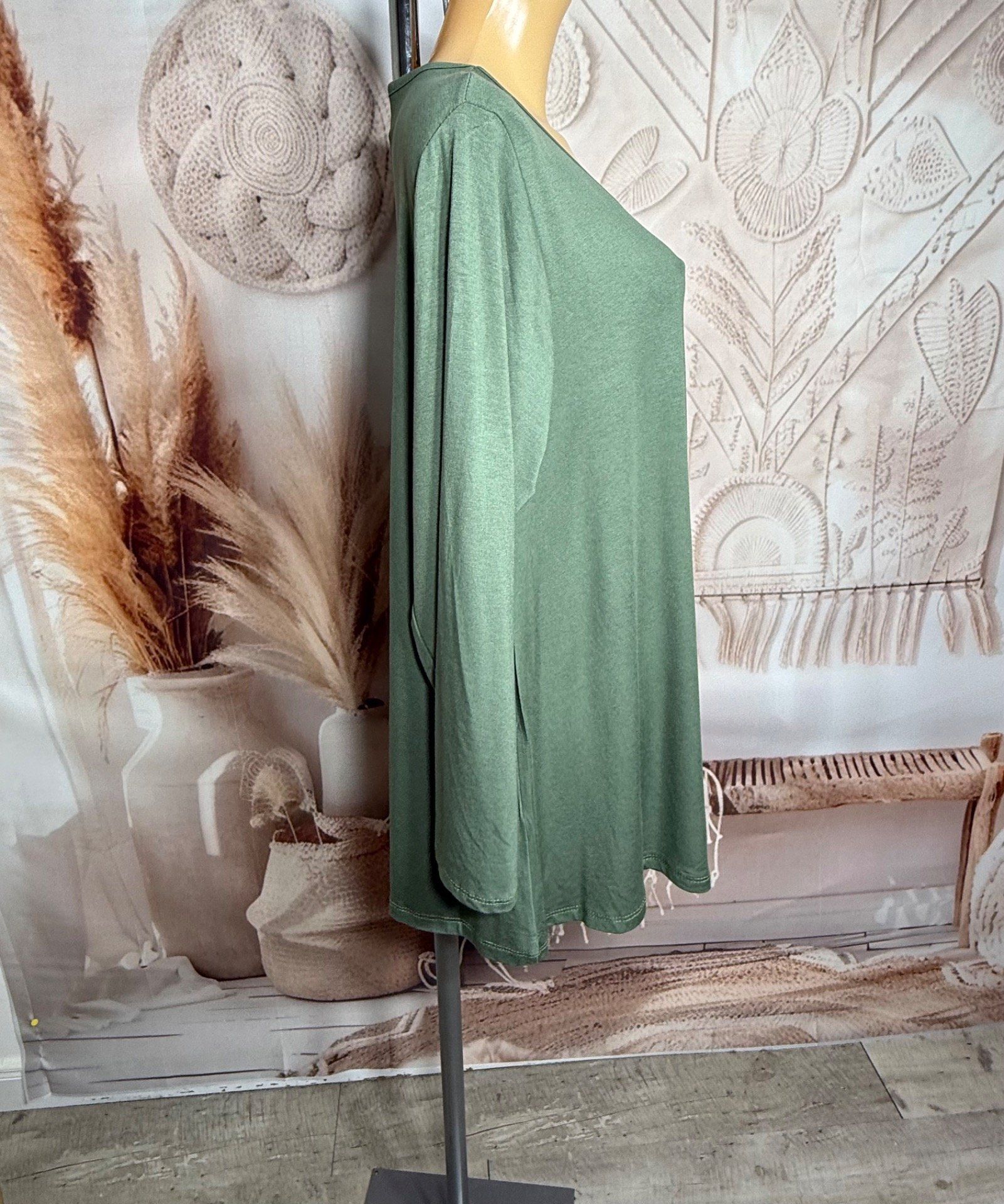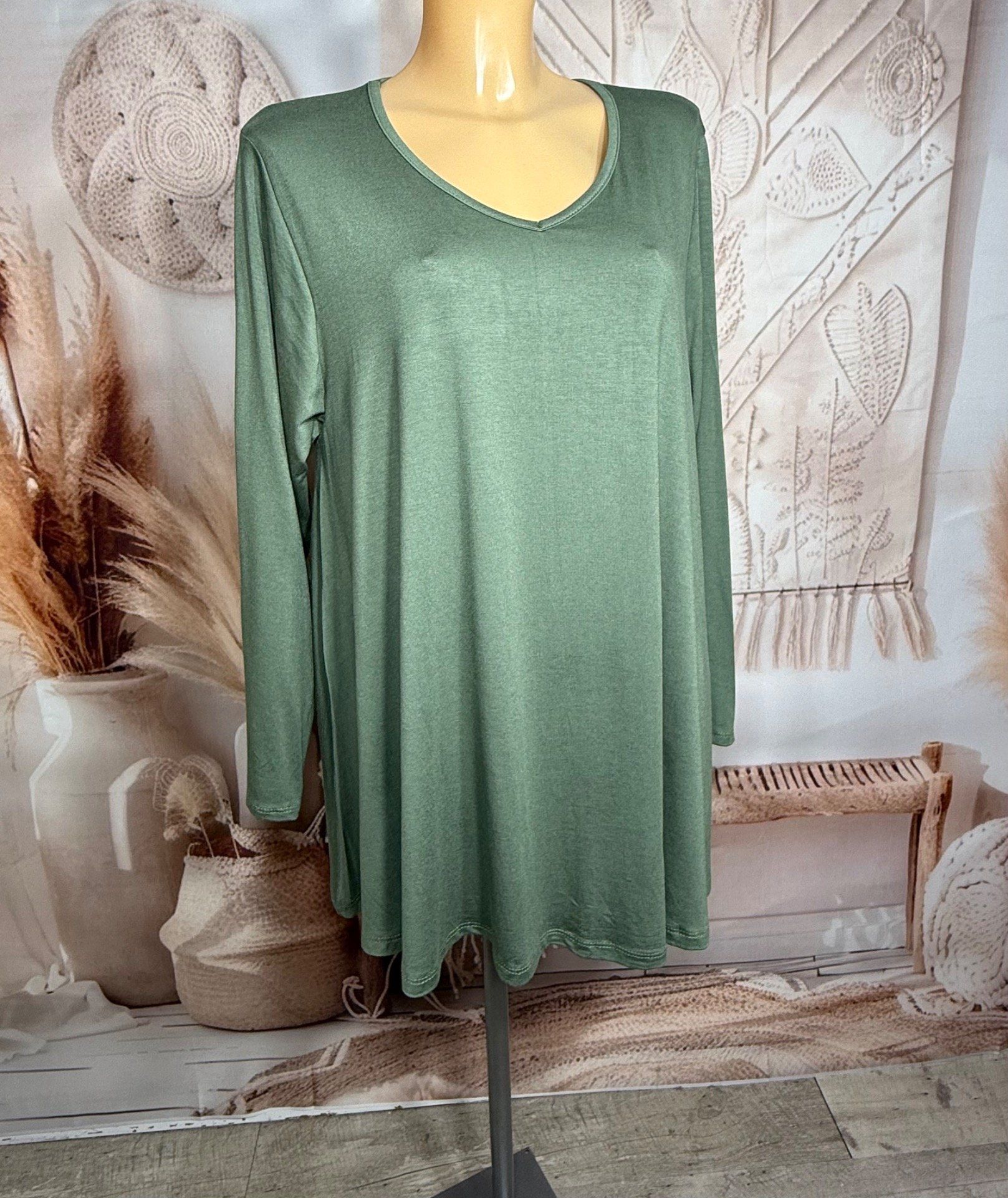 Top trapèze Kaki manches longues col V collection Les Basiques