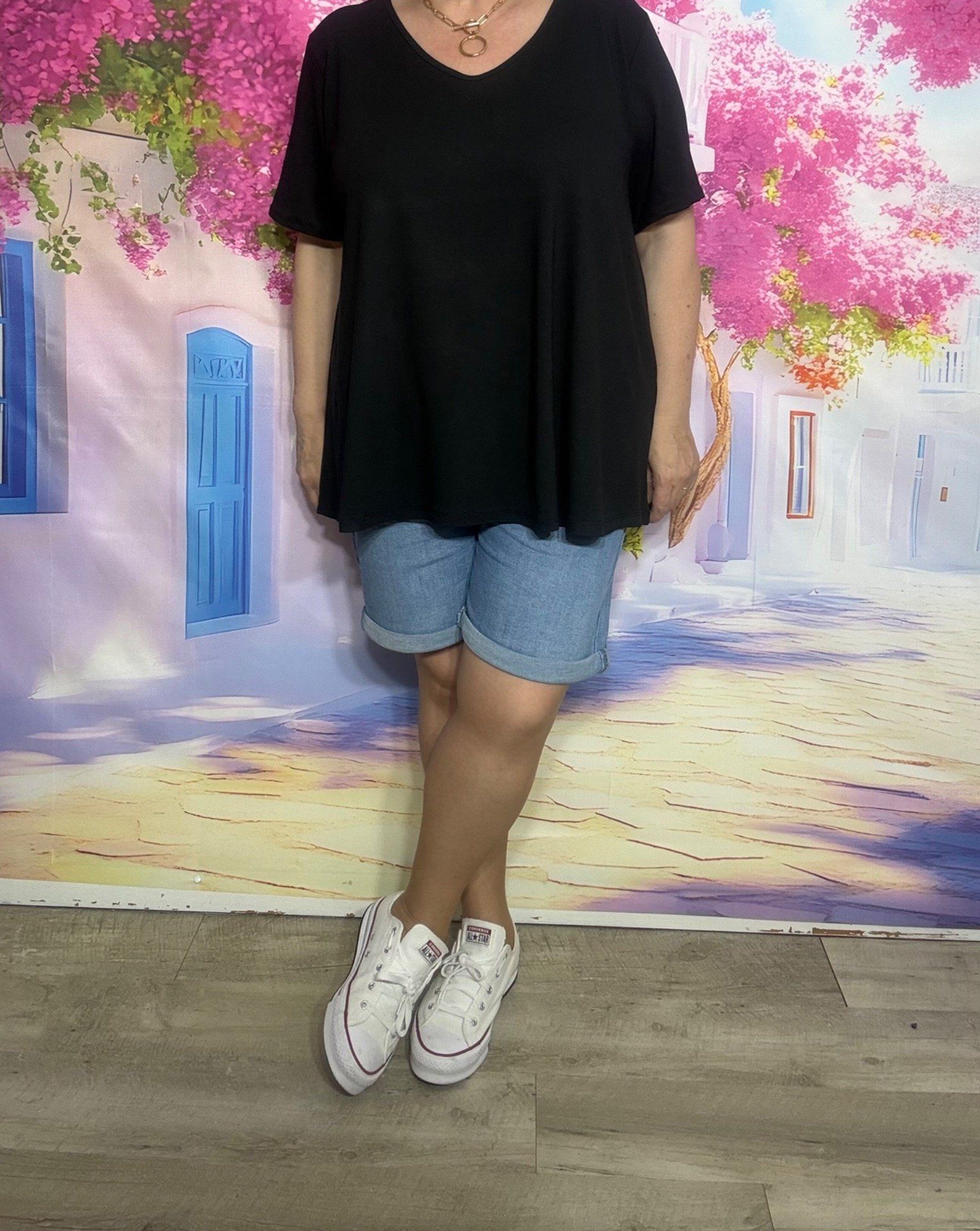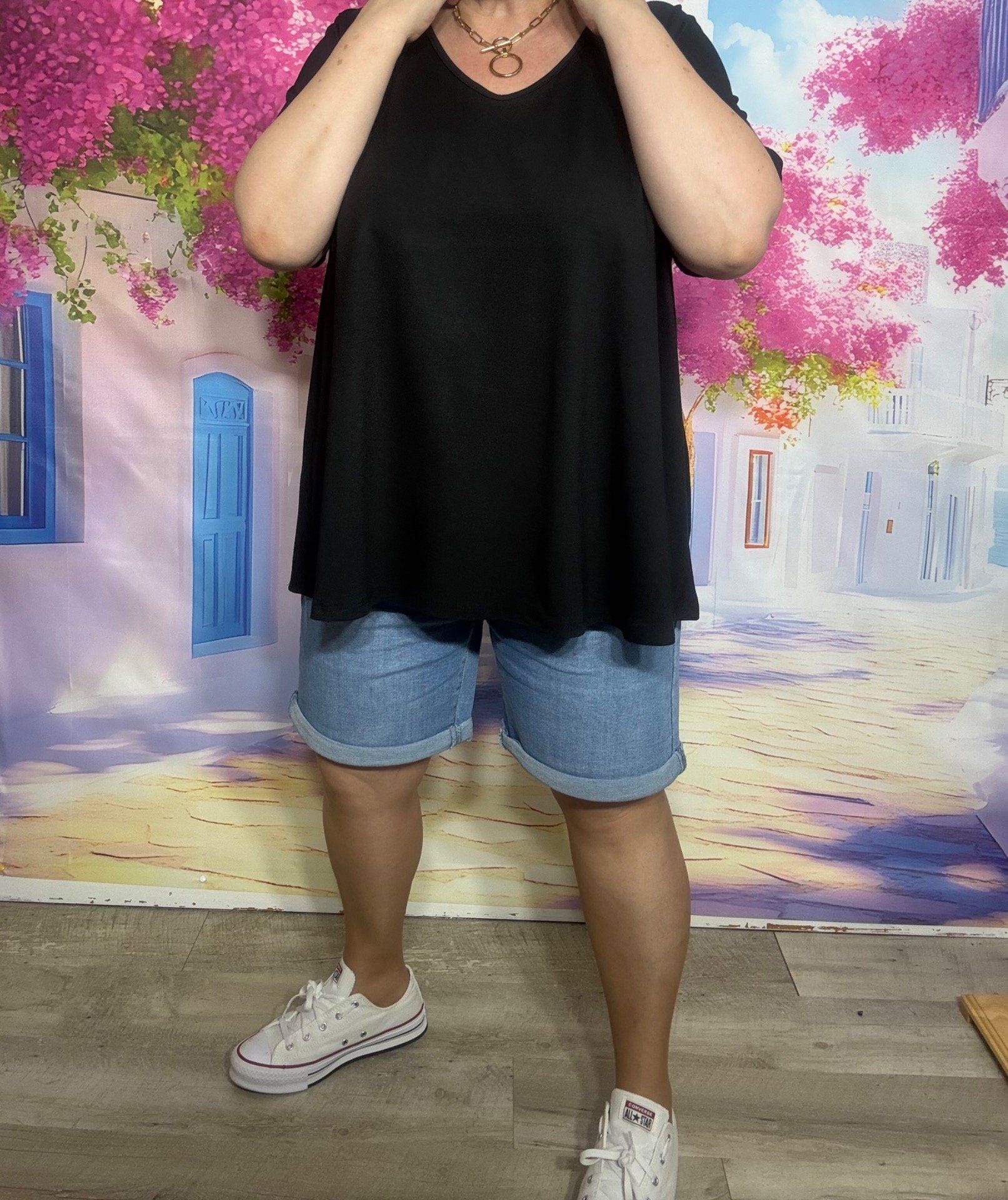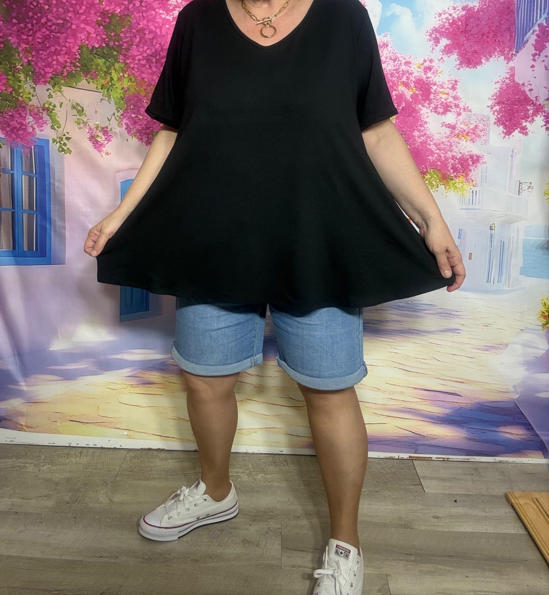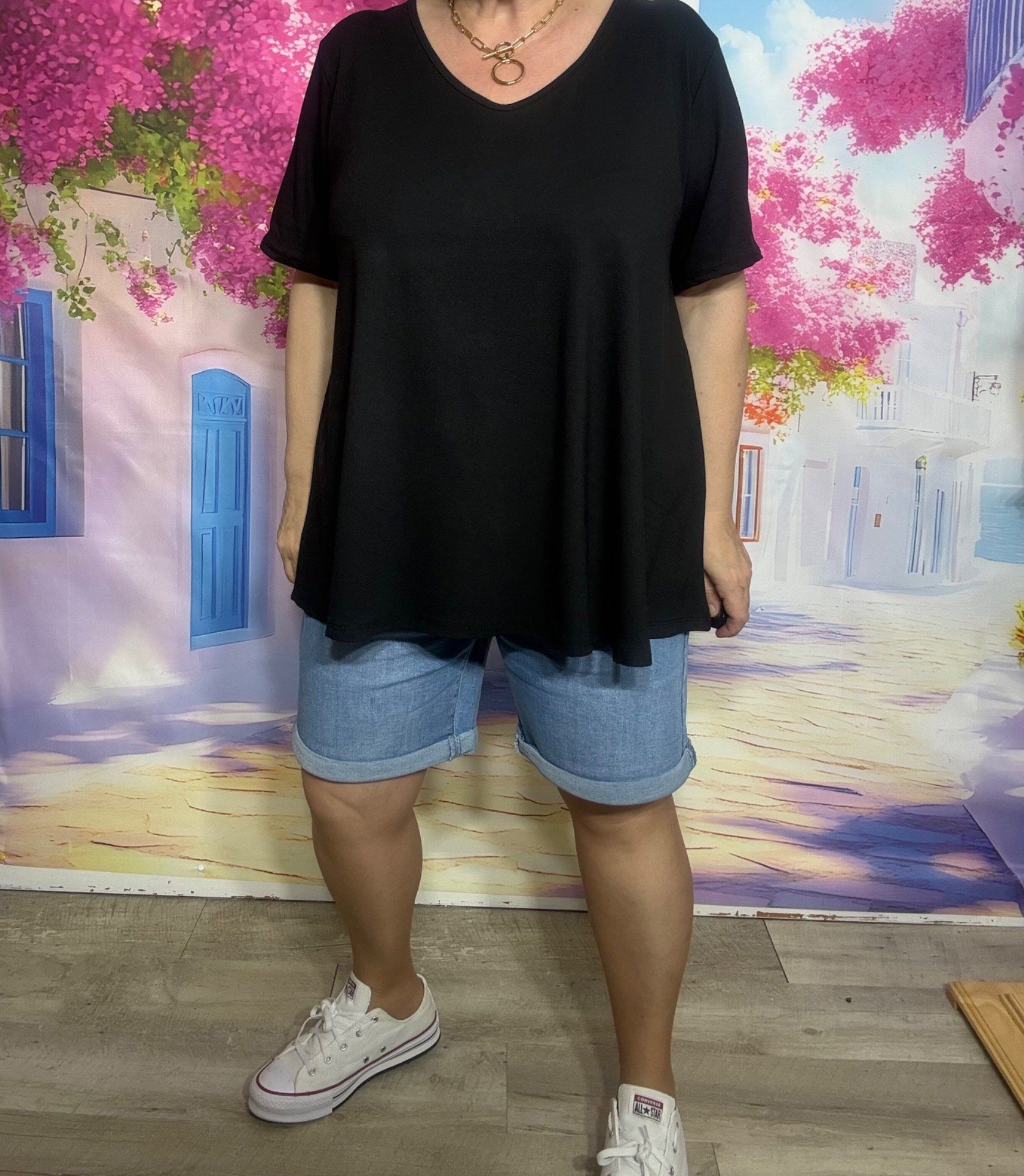 Top trapèze noir manches courtes col V collection Les Basiques du Dressing du 40 au 54