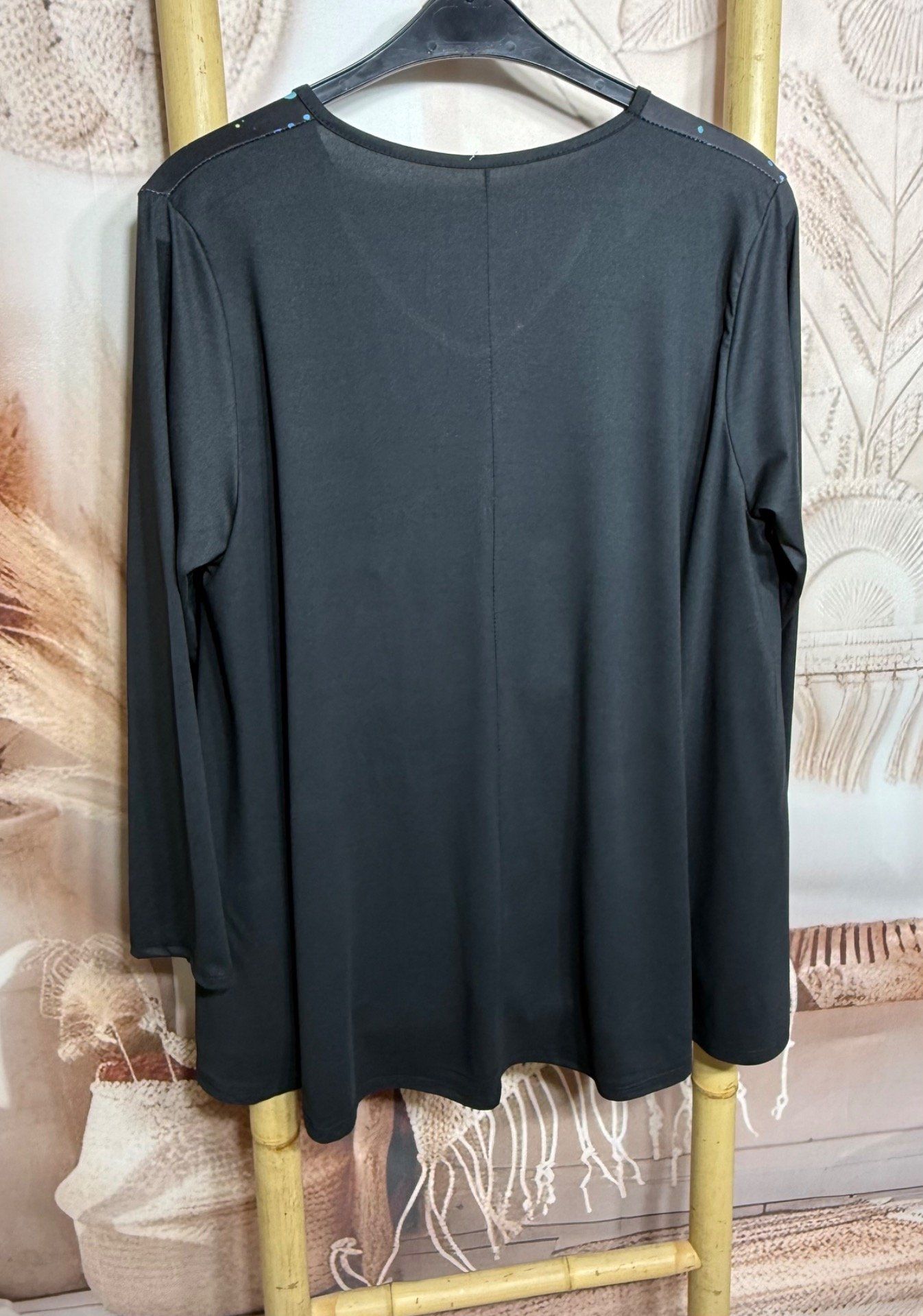 Top trapèze noir manches longues Le Papillon multicolore du 42 au 56/58