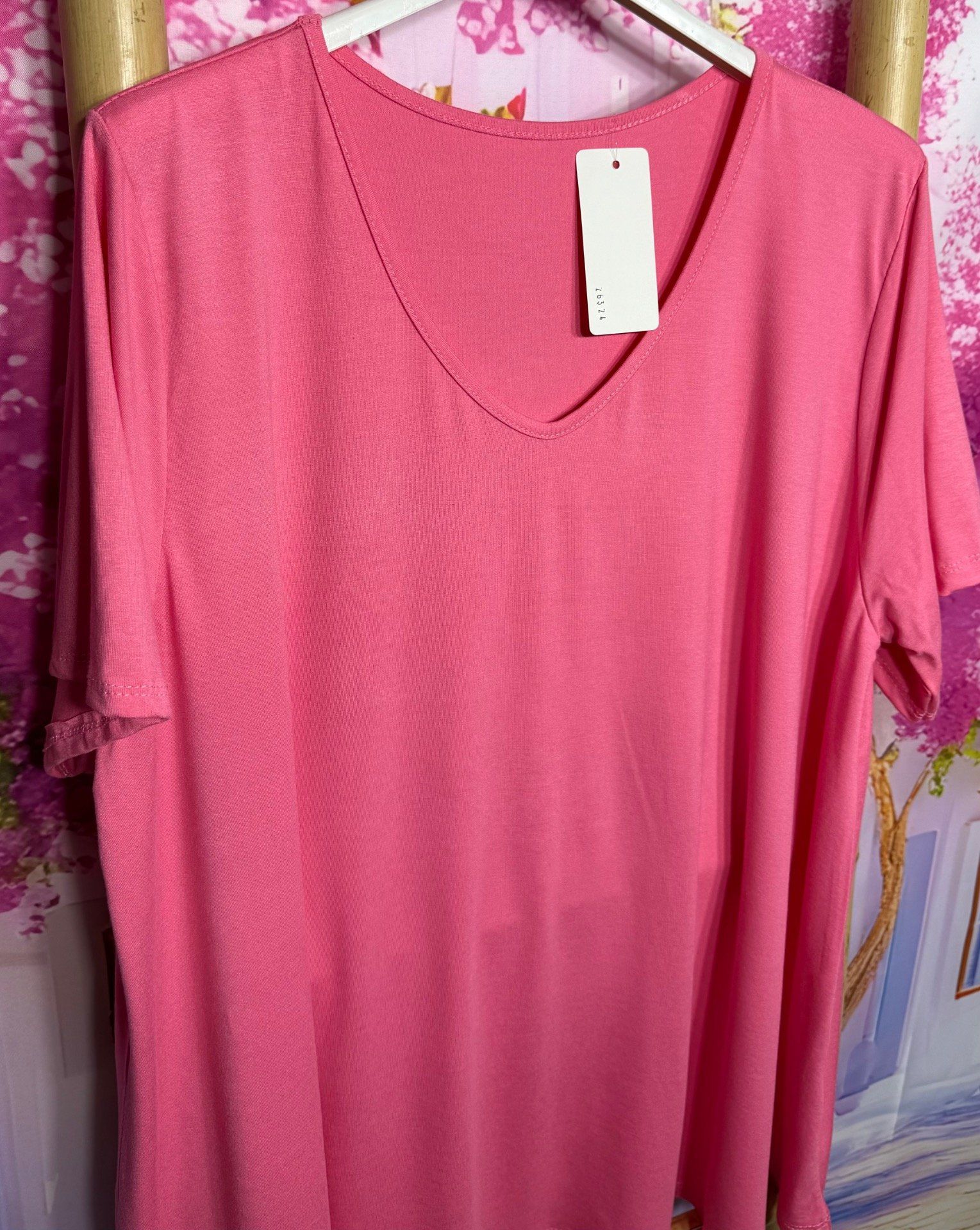 Top trapèze Rose Pivoine manches courtes col V collection Les Basiques du Dressing du 40 au 54