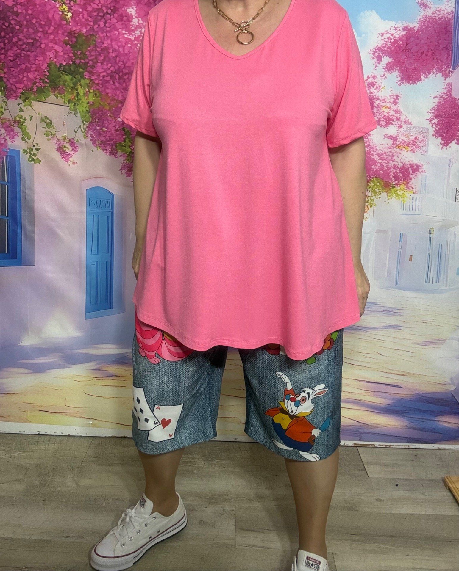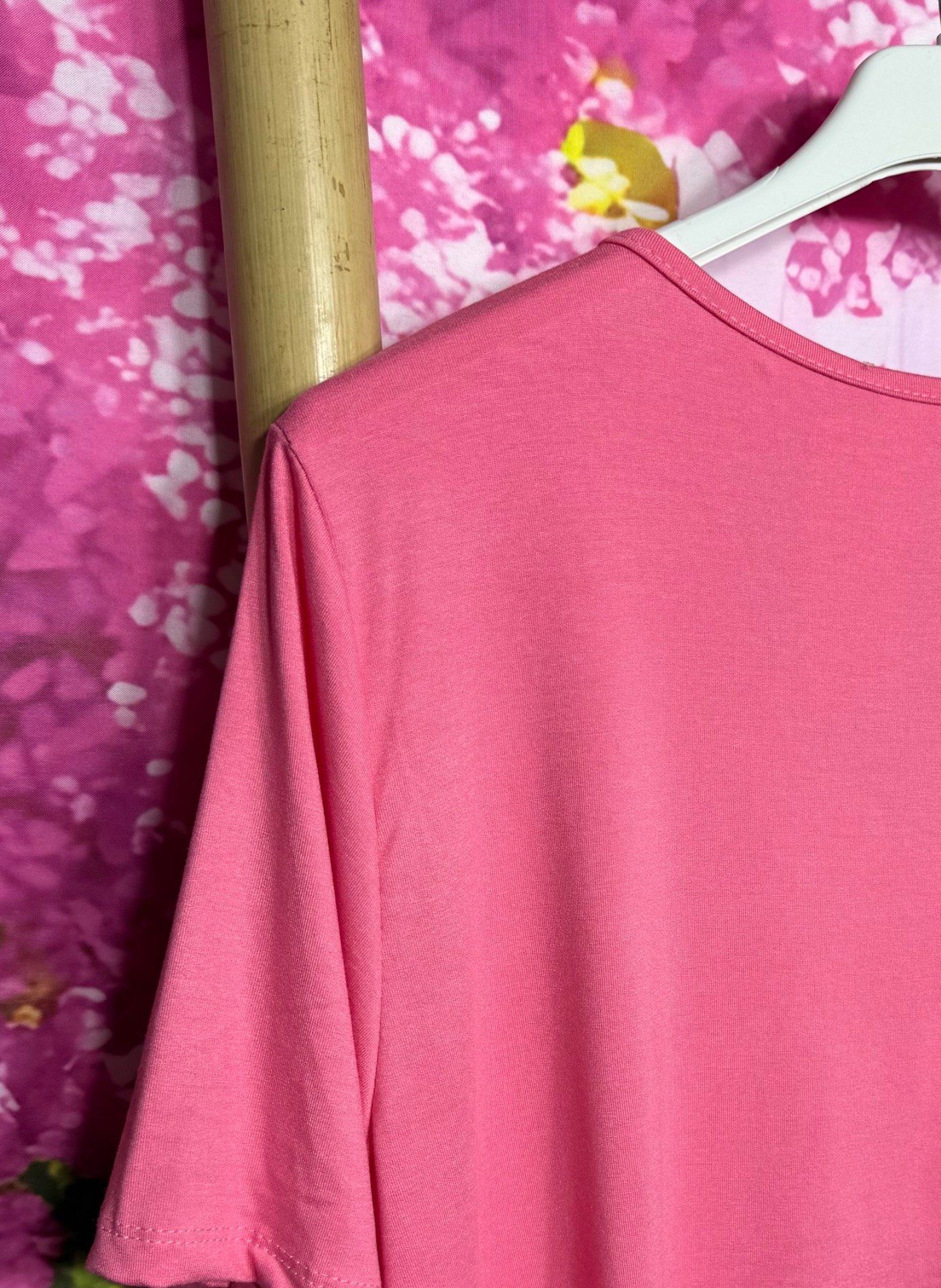 Top trapèze Rose Pivoine manches courtes col V collection Les Basiques du Dressing