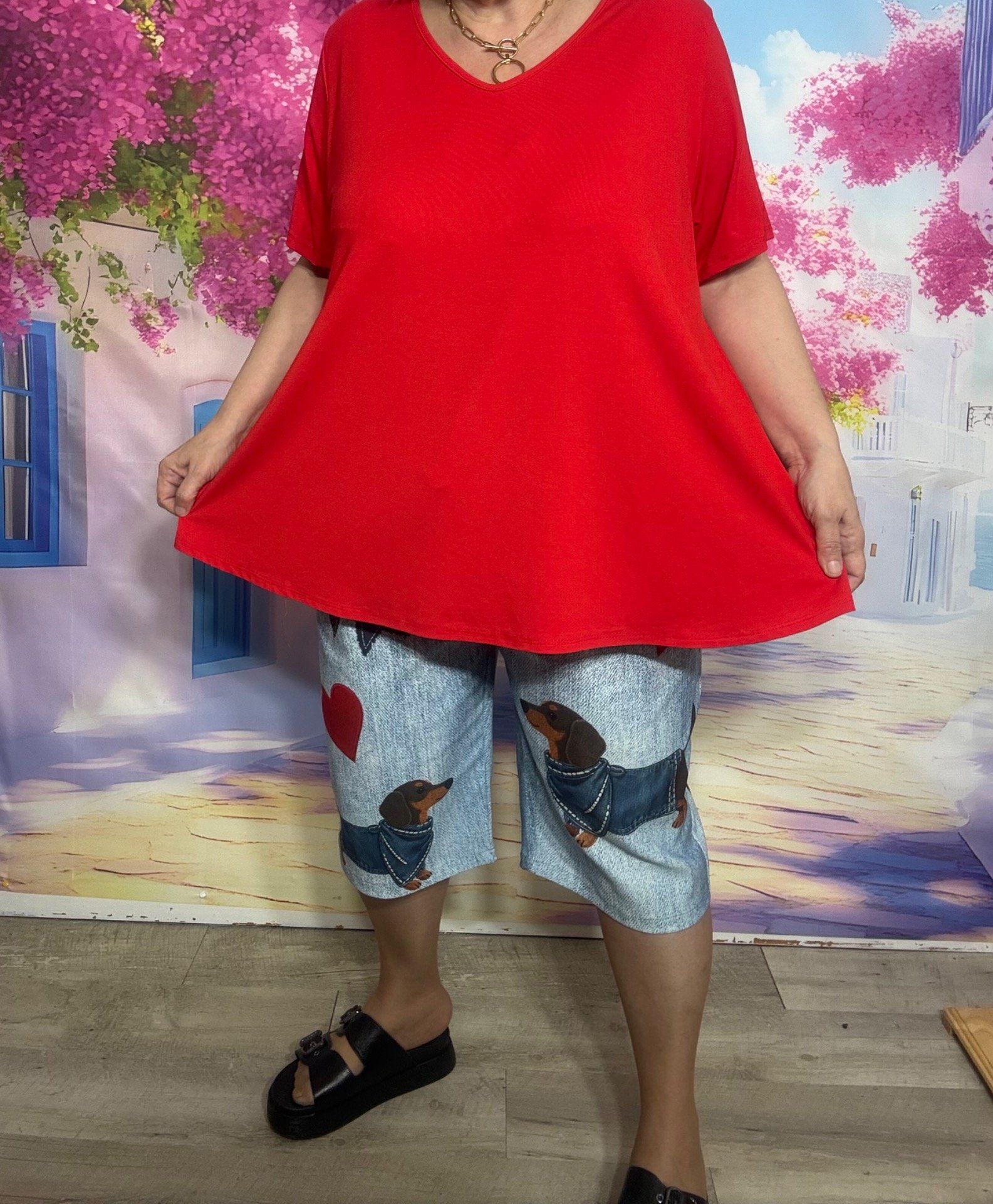 Top trapèze rouge manches courtes col V collection Les Basiques du Dressing du 40 au 54