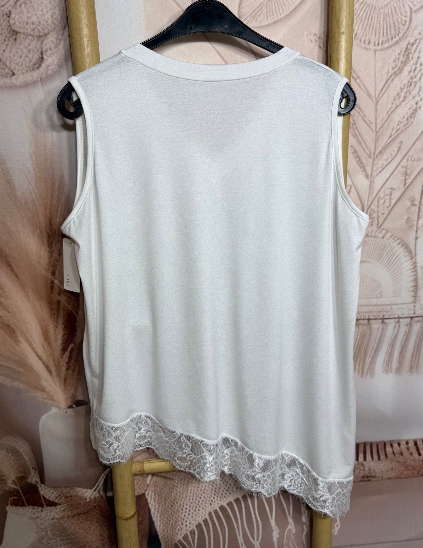 Top trapèze sans manches asymétrique blanc dentelle Les Basiques du Dressing du 40 au 52