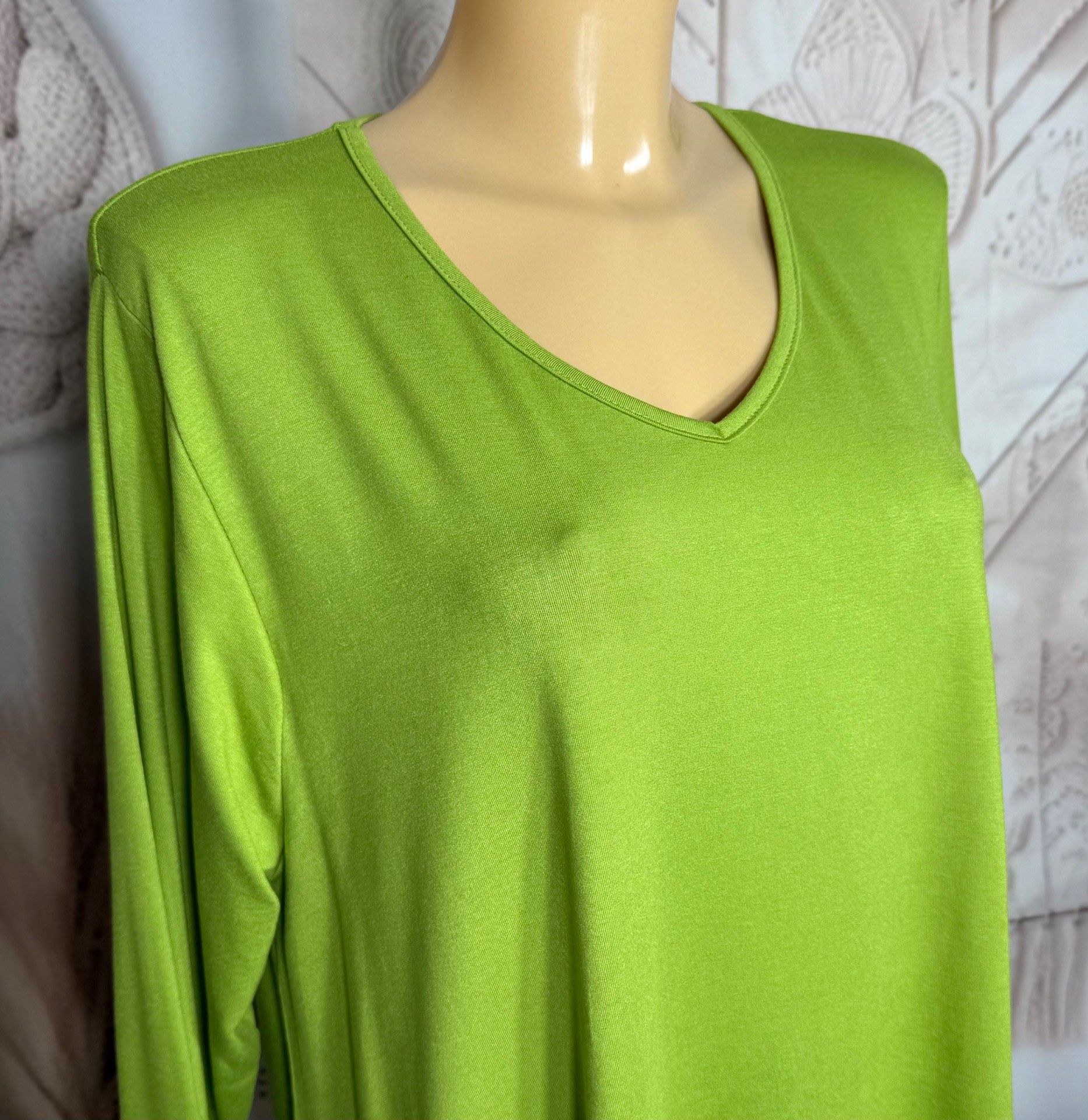 Top trapèze vert pistache manches longues col V collection Les Basiques du Dressing du 40 au 54