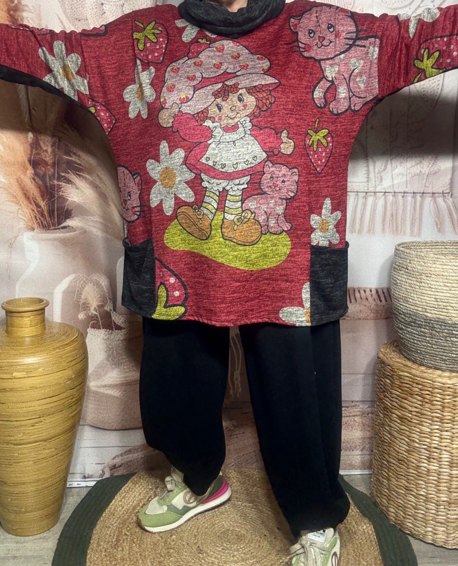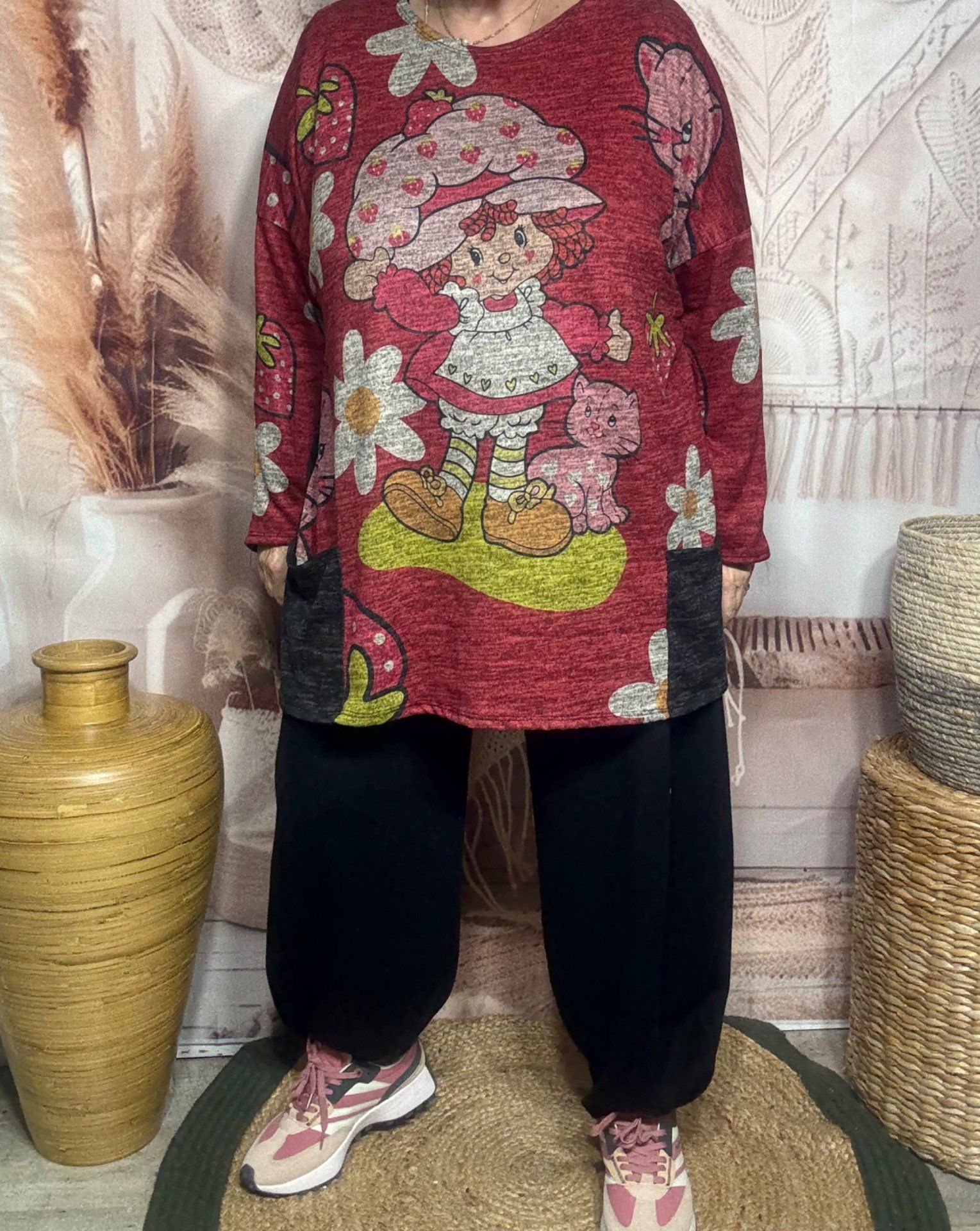 adorable imprimé Charlotte aux Fraises devant (le dos + l'arrière des manches sont noirs chinés grisés)
