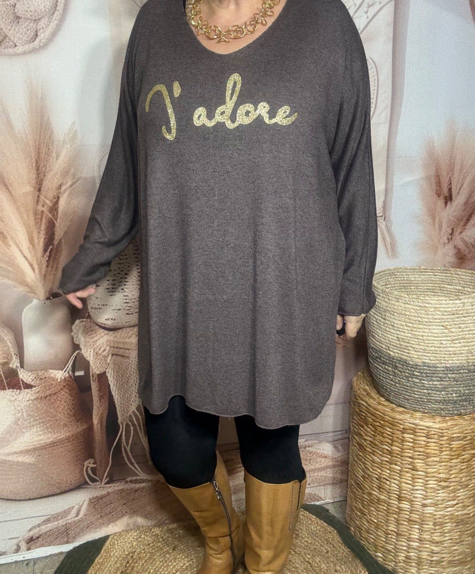 Tunique longue ou robe courte chocolat chiné J'adore doré or douceur +++