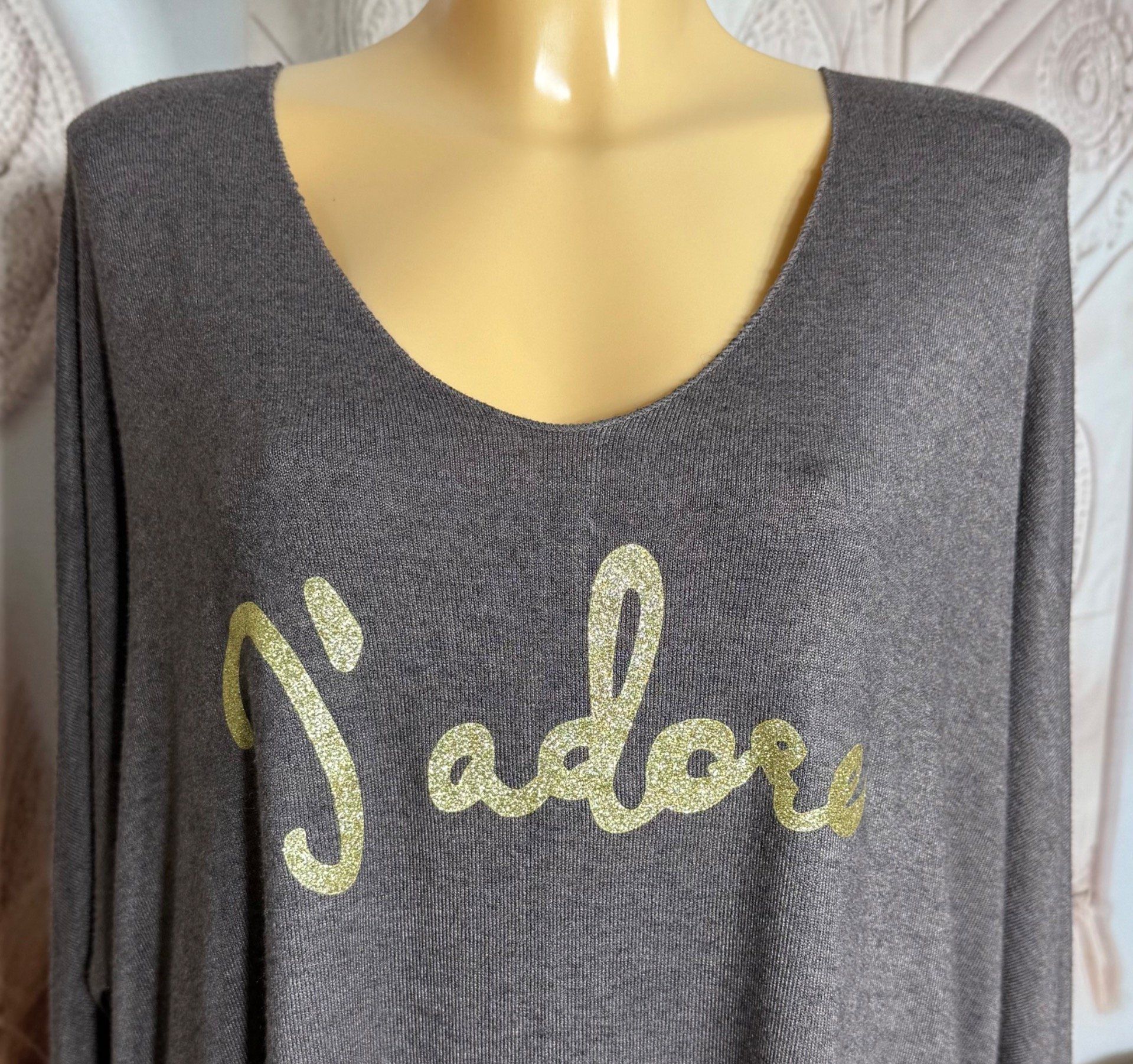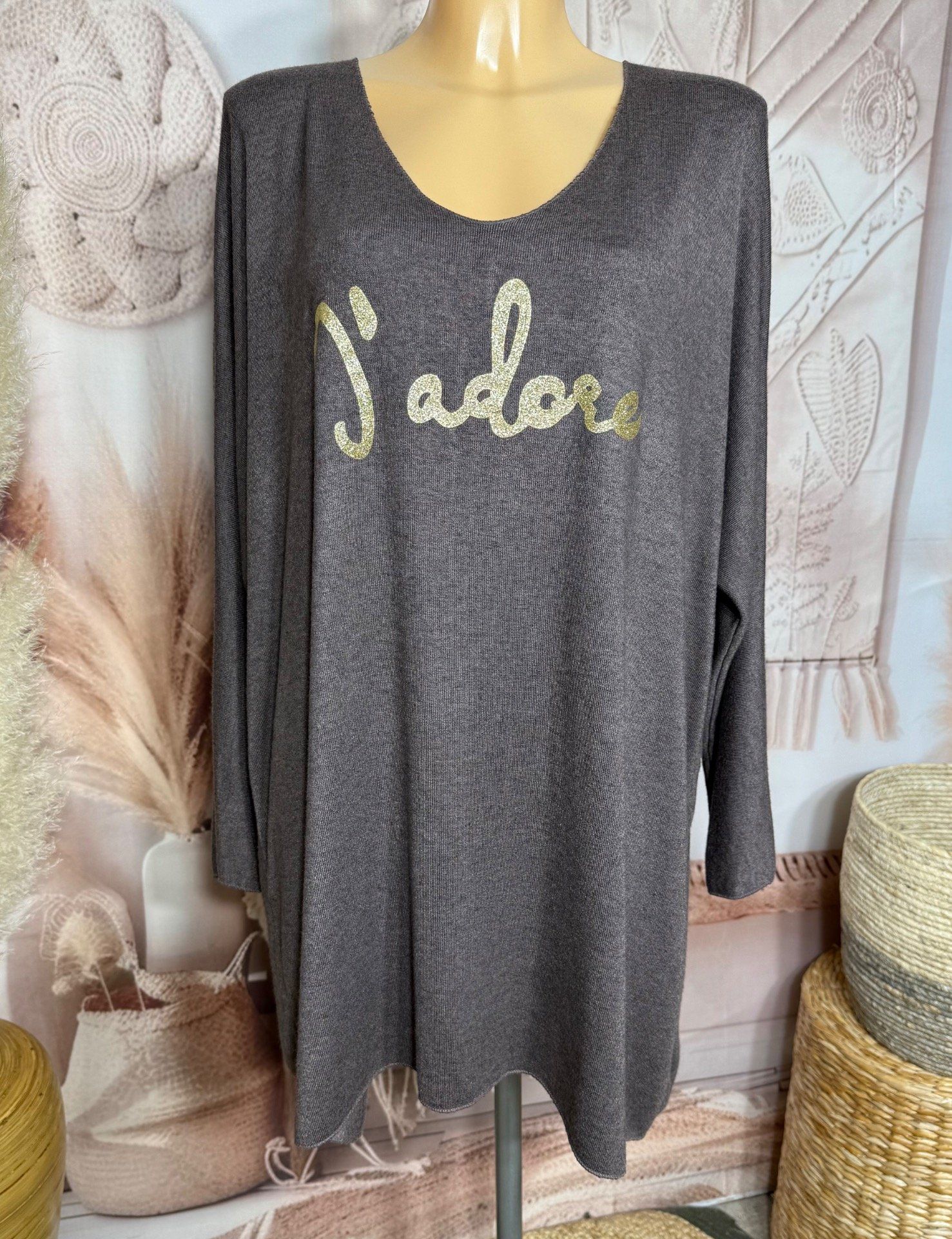 Tunique longue ou robe courte chocolat chiné J'adore doré or douceur +++ du 40 au 52/54
