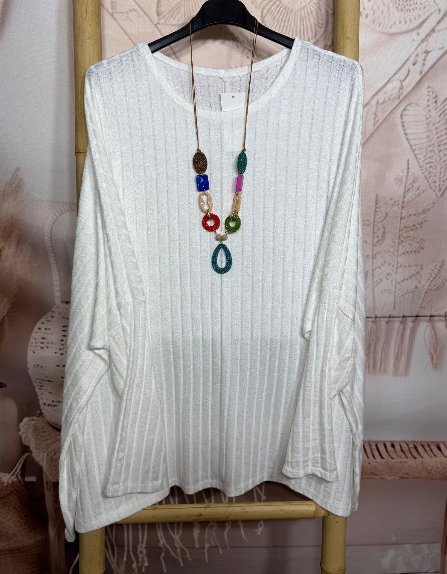 Tunique oversize côtelée blanche + collier douceur +++