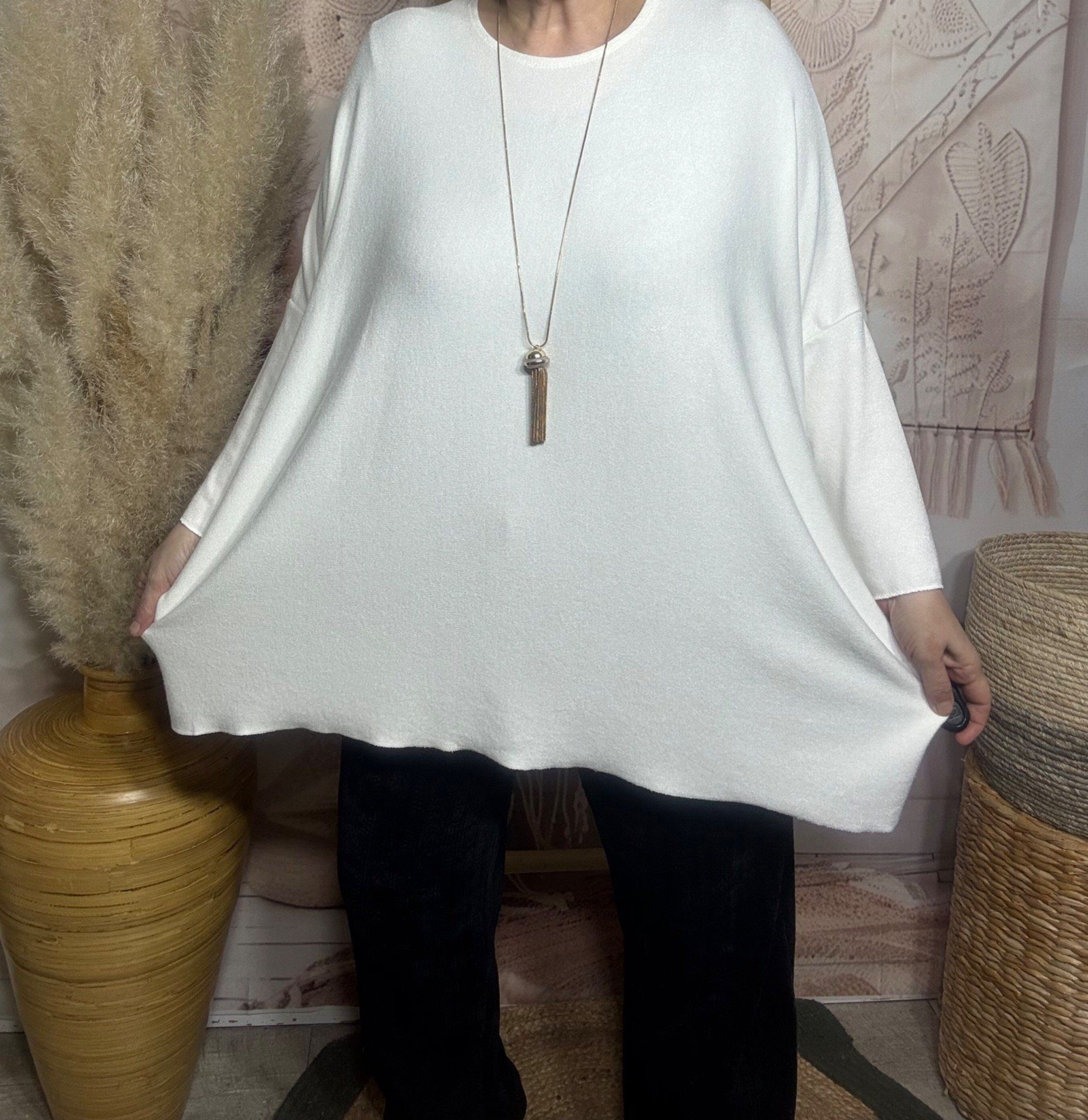 Tunique oversize crème mi-longue manches chauve-souris douceur +++ du 42 au 54/56