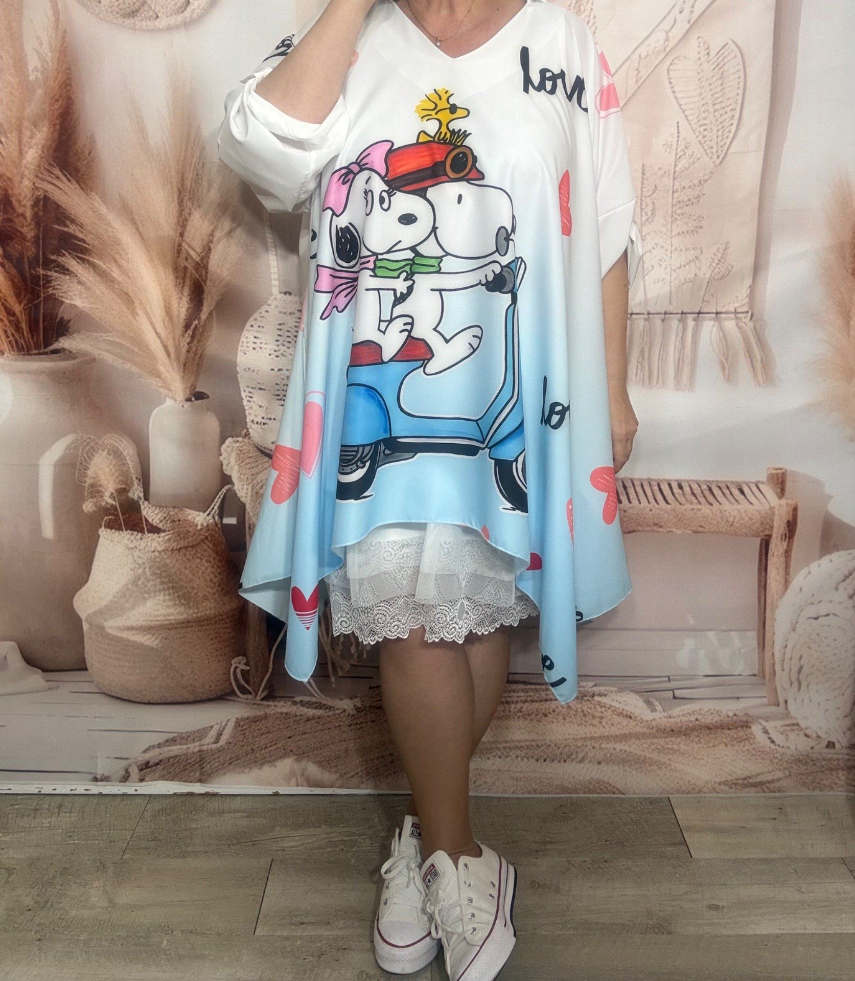 Tunique trapèze oversize blanche coeurs Snoopy et son amoureuse du 42 au 54/56