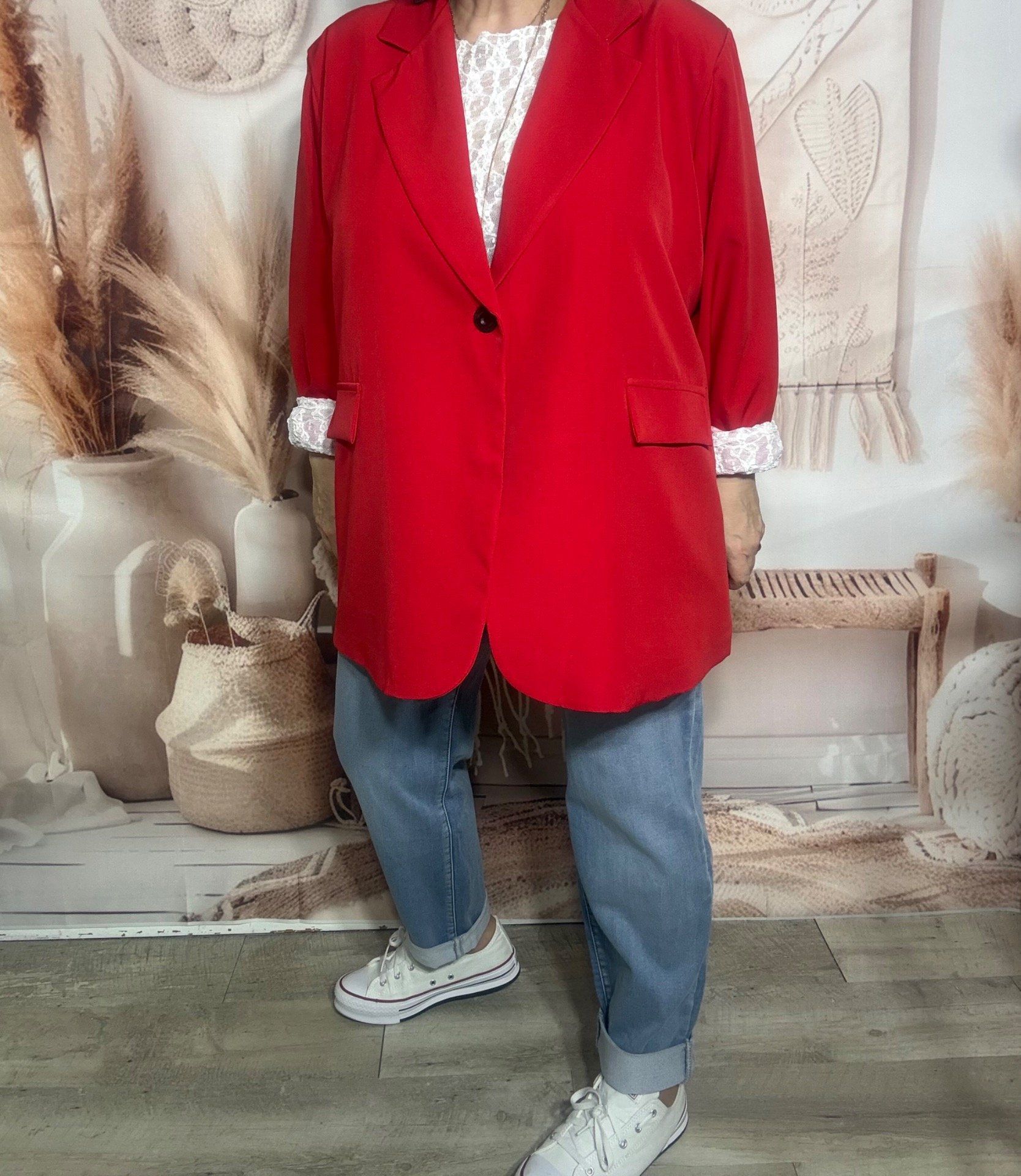 Veste blazer ample rouge TOUTE DOUBLÉE du 42 au 54 et même + si portée ouverte