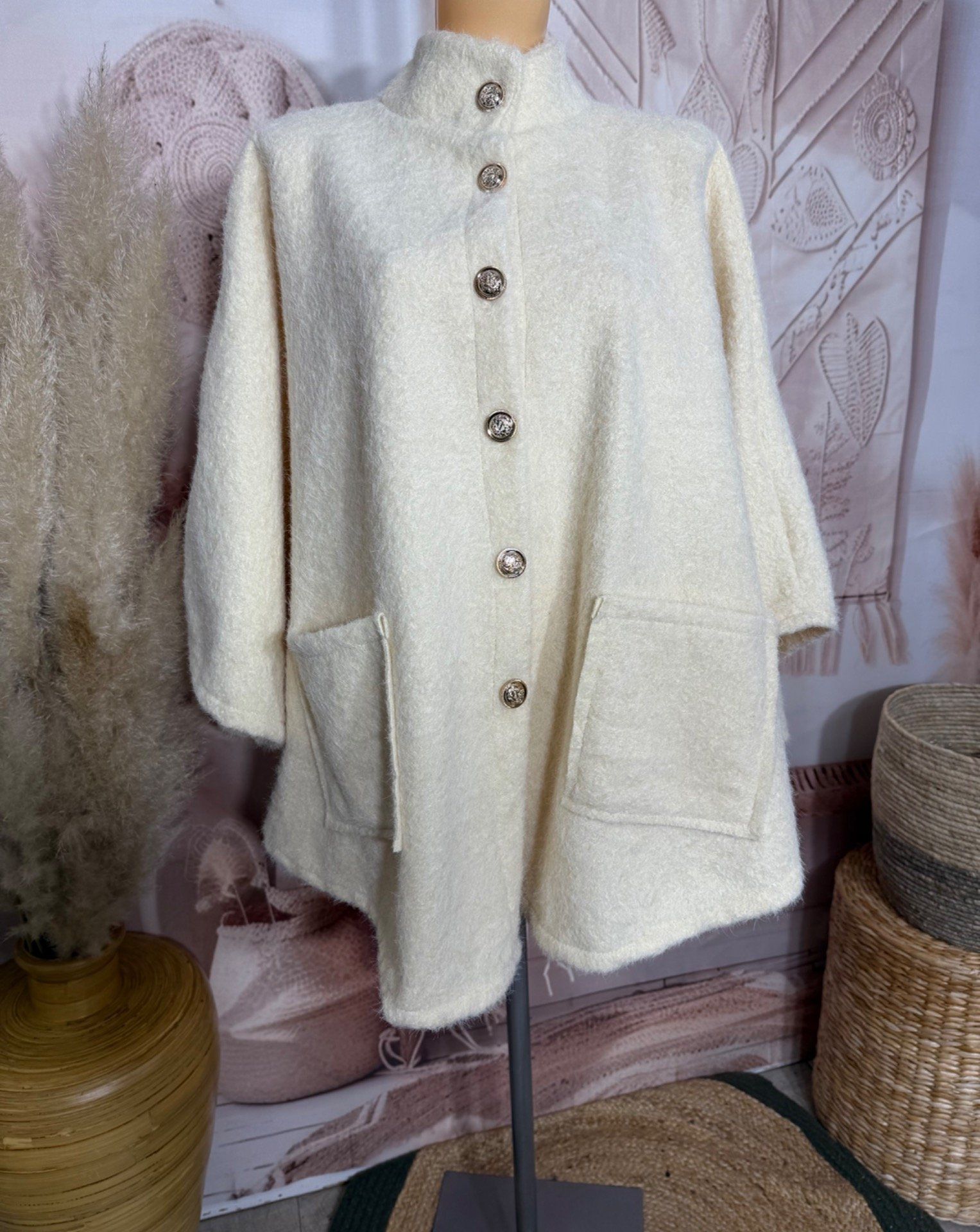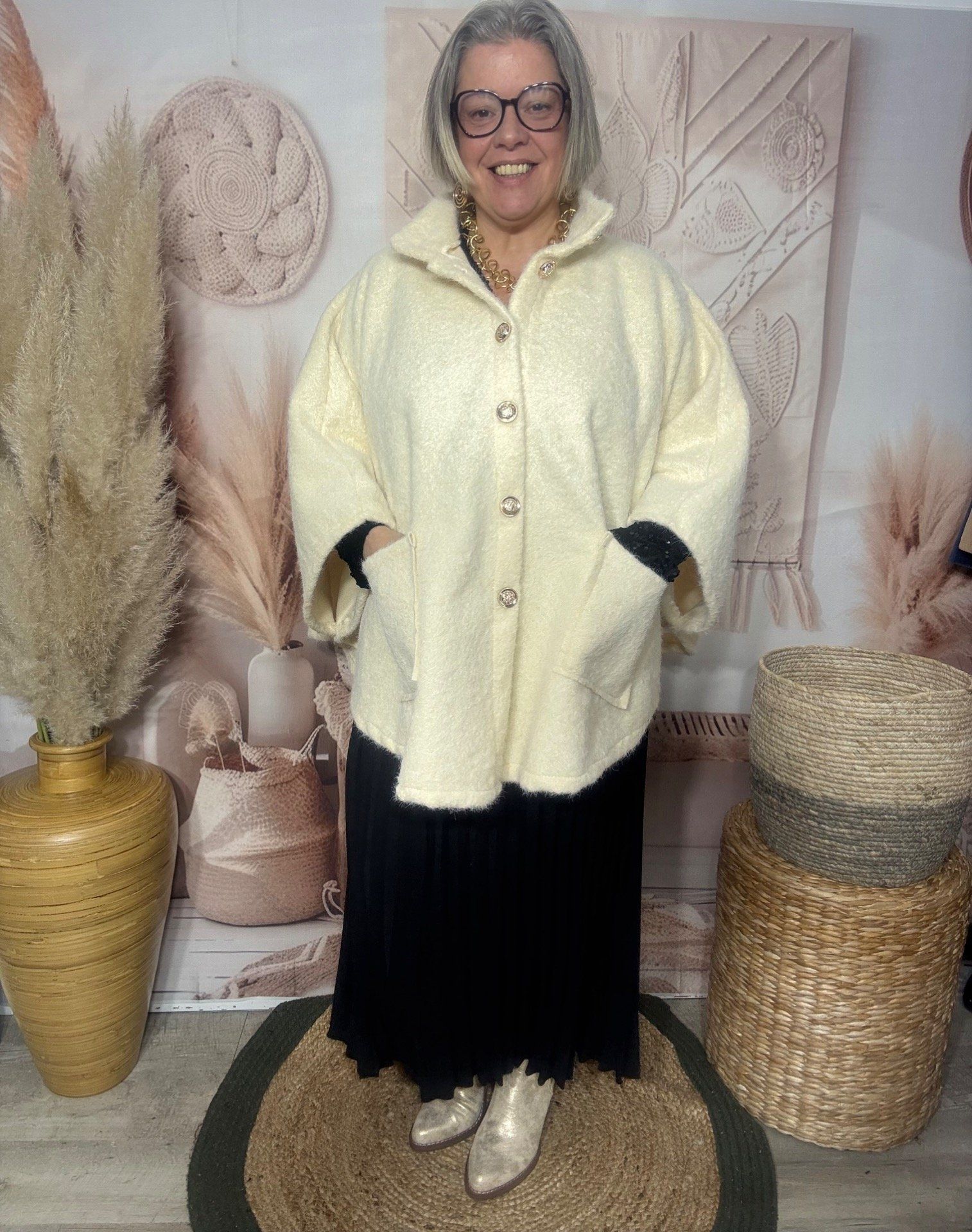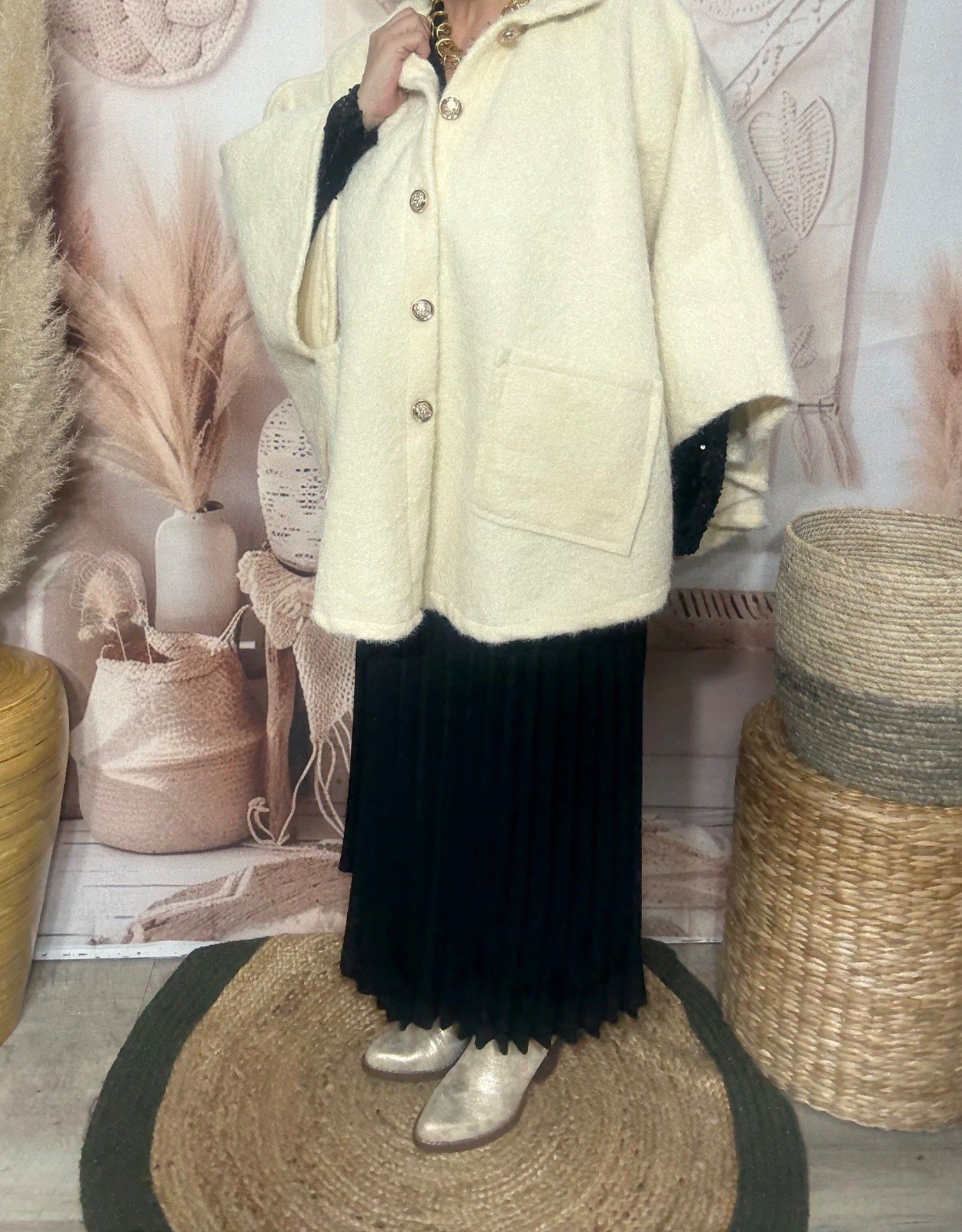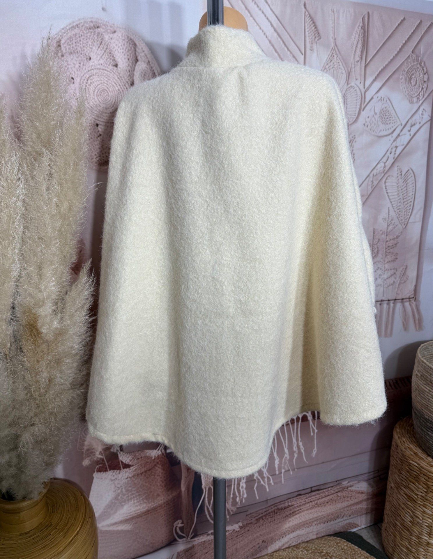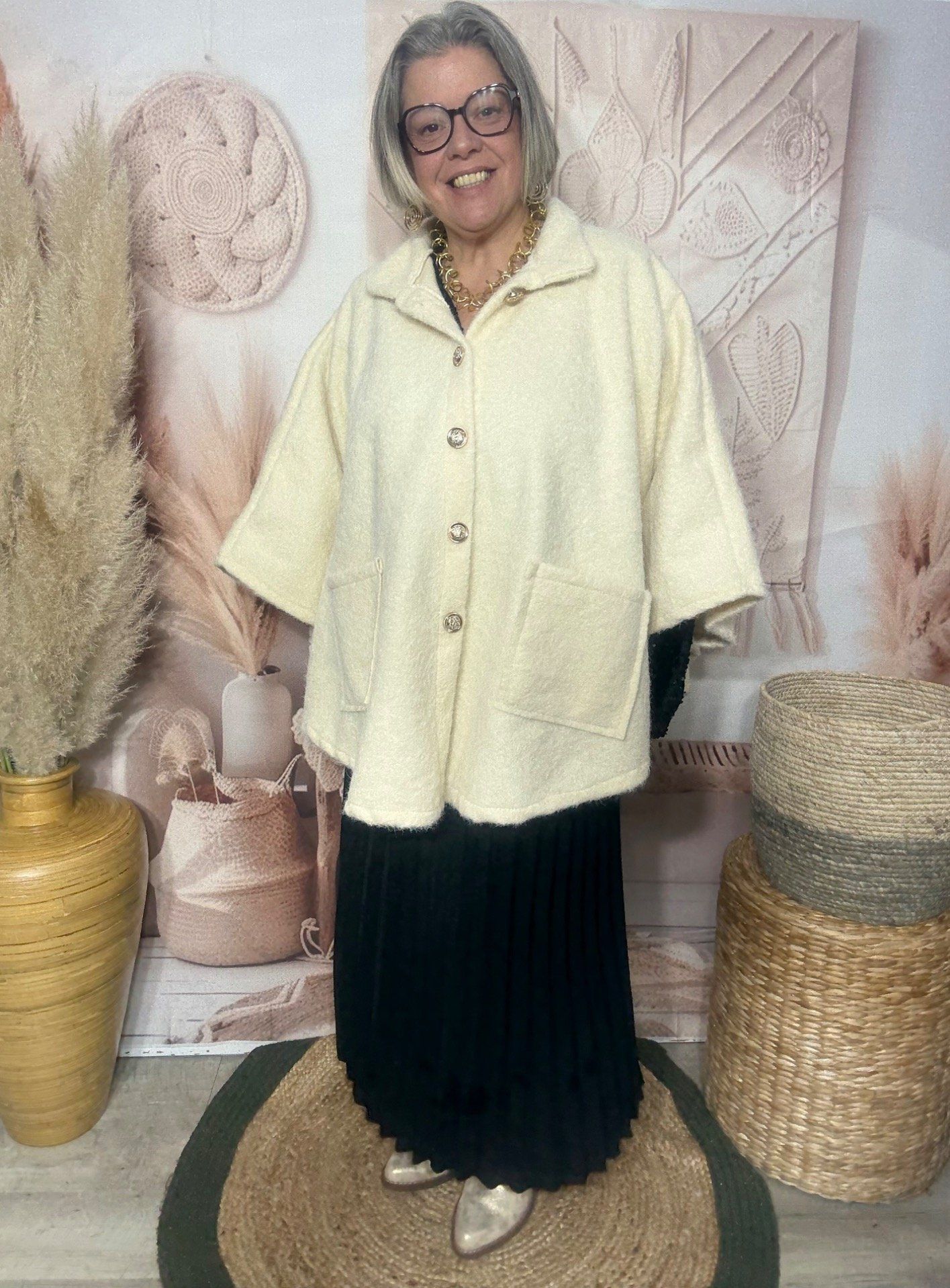 Veste-cape oversize laine bouillie crème TOUTES TAILLES jusqu'au 60 hiver +++
