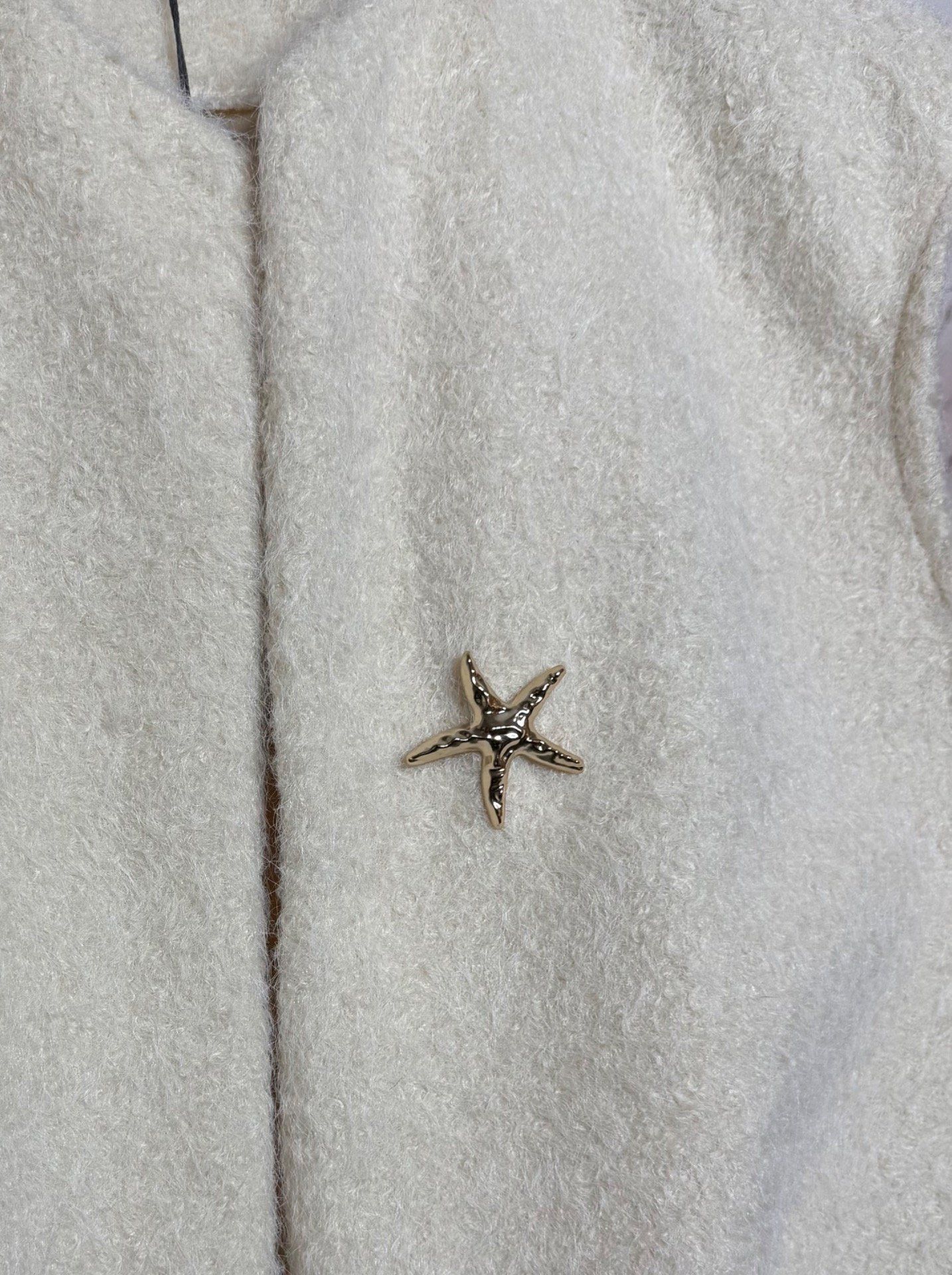 Veste sans manches façon laine bouillie crème + broche dorée du 40 au 50/52