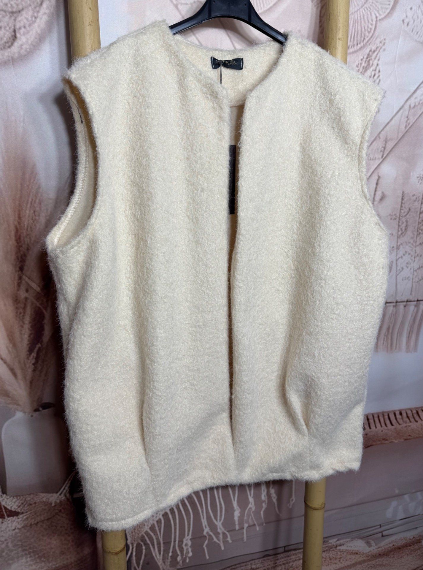 Veste sans manches façon laine bouillie crème