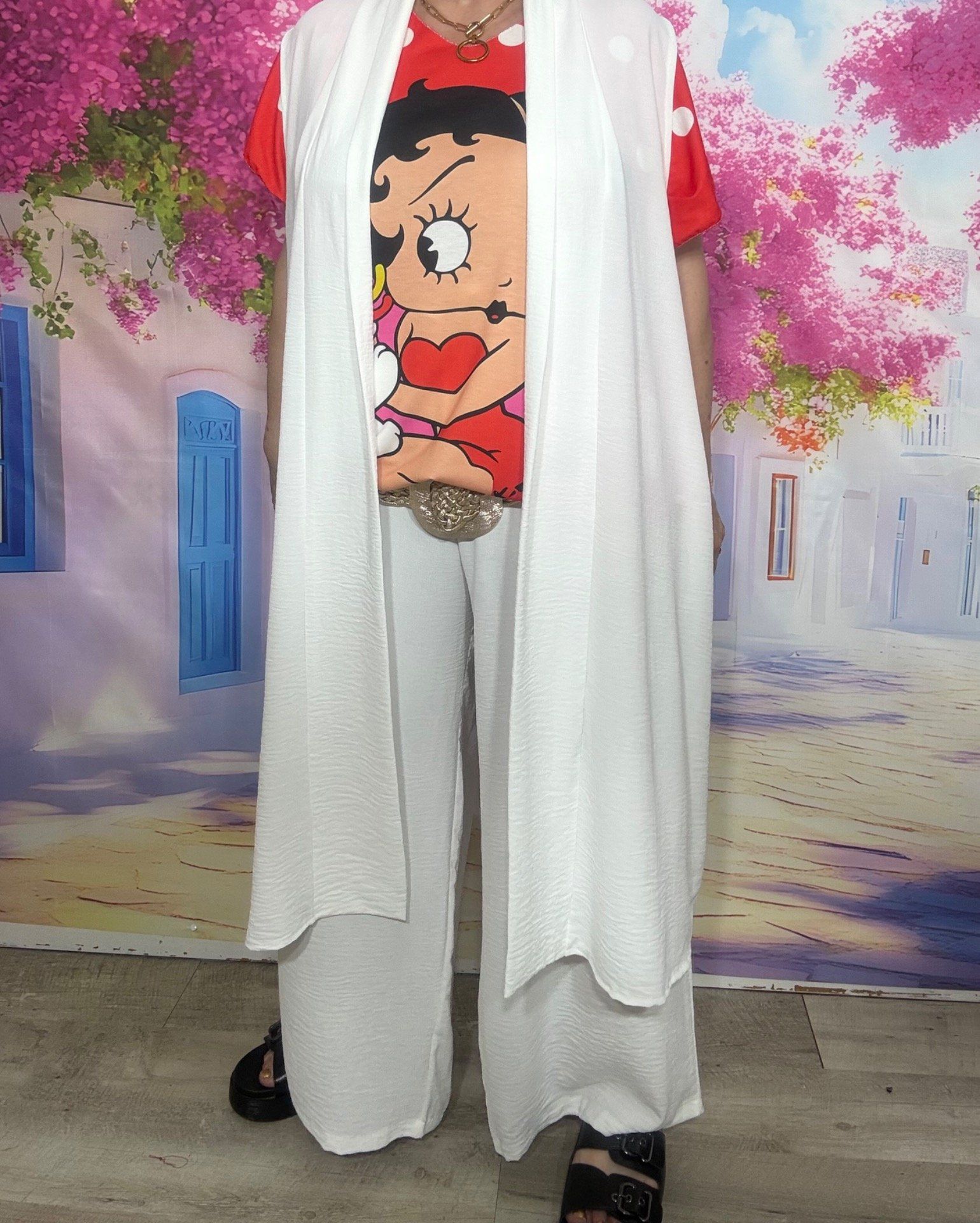 Veste trapèze longue fluide sans manches écrue douceur +++