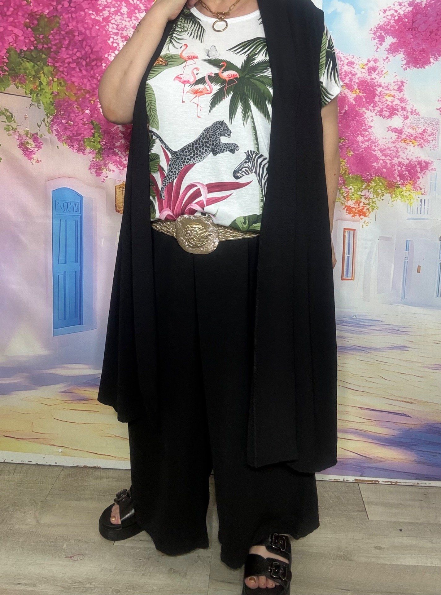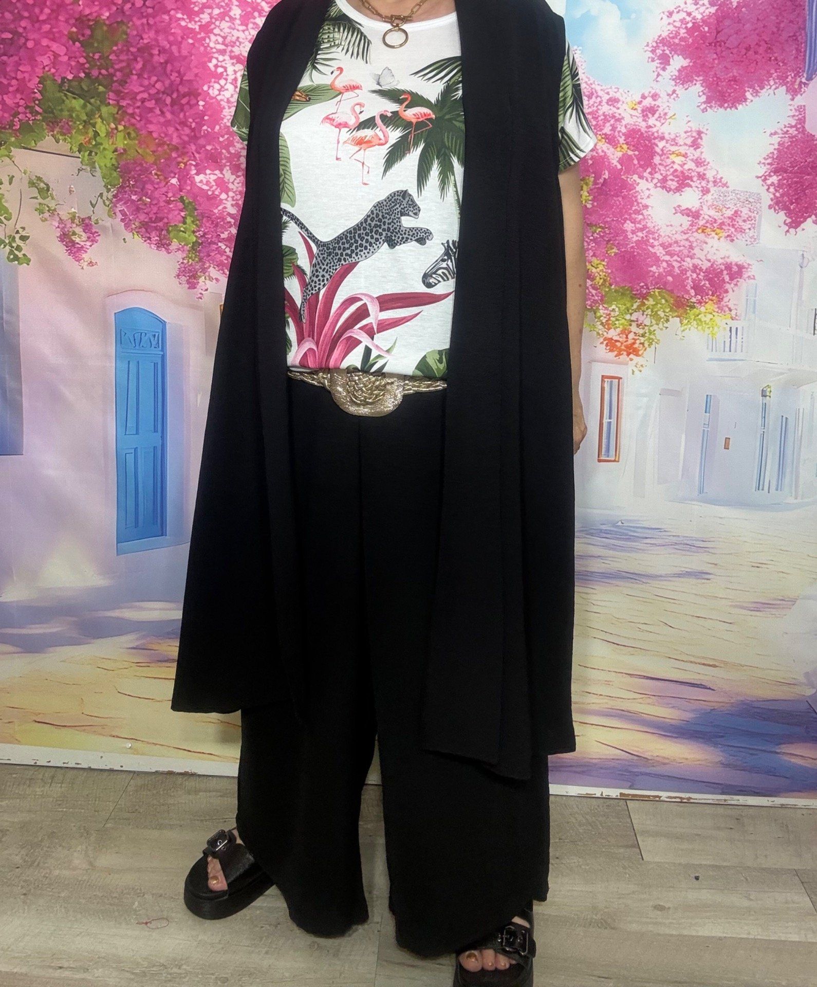 Veste trapèze longue fluide sans manches noire douceur +++ du 42 au 52 et même +